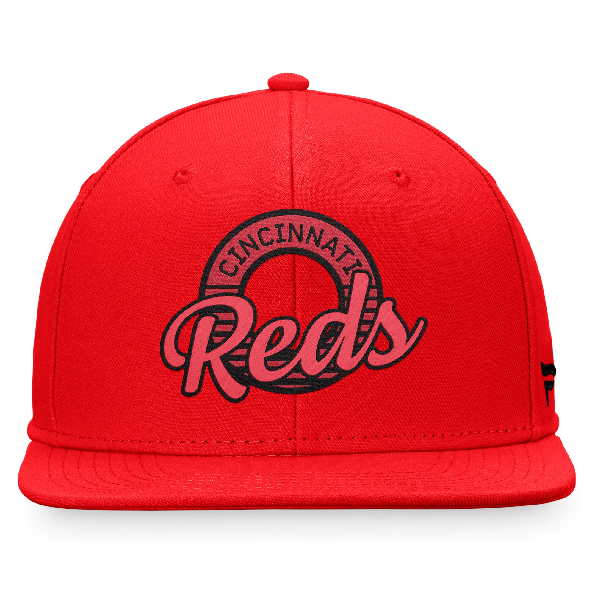 Pay a nod to your favorites before stepping out by grabbing this Cincinnati Reds Circle Script hat from Fanatics Branded. It features an embroidered wordmark in a tasteful circle logo on the front panels and an additional logo on the right side crown for a double dose of team spirit. The snap closure makes finding the perfect fit simple and the flat bill offers a street-ready look that will have you ready for the next opening pitch.