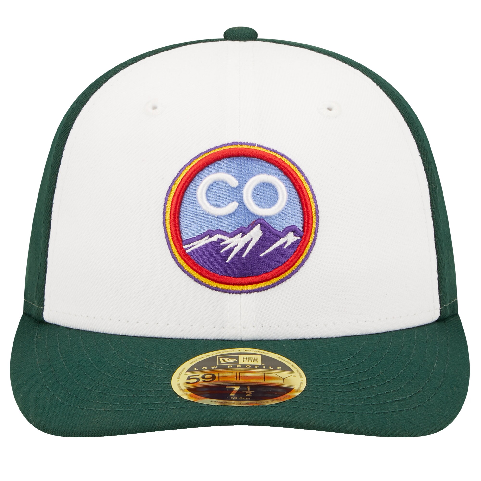 Add a truly unique piece to your Colorado Rockies collection of gear with this new 2022 City Connect Low Profile 59FIFTY Fitted Hat. This special New Era piece is perfect for you whether you were born in the high west or have fallen in love with the bold adventures that Colorado and its beautiful mountain ranges provide. The colors for this gear are inspired by and reflect the deep mountain evergreens and purple-hued skies that encompass your home region. With intricate 2022 City Connect details that celebrate your Colorado pride as well as the historic identity of the Rockies' past no one will ever wonder where you're from or who you rep when you sport this new look.