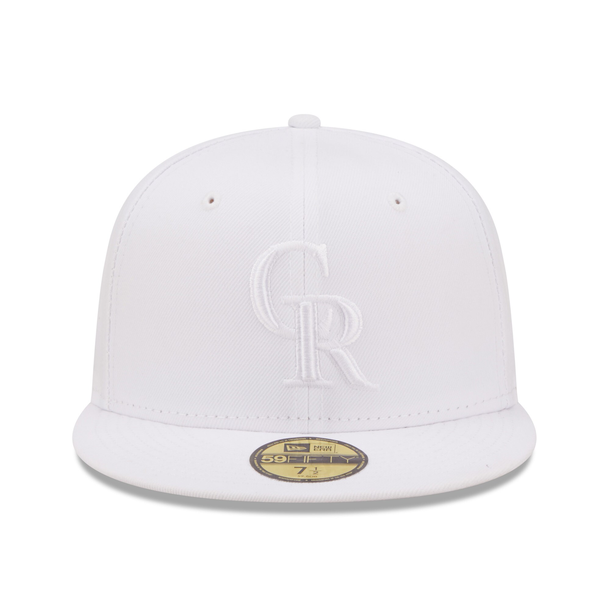 Add a striking touch to your Colorado Rockies collection with this White on White 59FIFTY fitted hat from New Era. Along with a high crown it offers a structured construction to add some street-ready style to your fandom. Plus it features spirited Colorado Rockies graphics in the same shade as the cap itself to further elevate any look you put together.