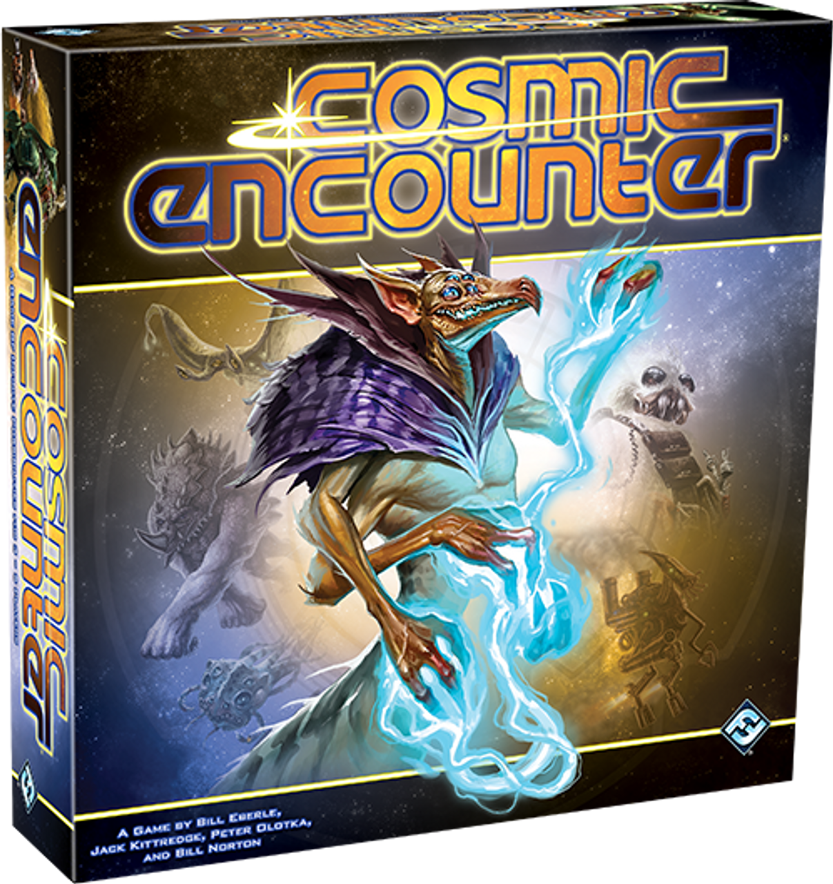 Colonize the galaxy in Cosmic Encounter! This game of interstellar exploration, negotiation, and conflict invites three to five players to lead their own unique alien civilizations as they seek to spread across the stars. But every planet is ruled by someone, and the only way to expand your cosmic colonies is through either diplomacy or war. By establishing colonies on five planets beyond the reaches of your home system, you will safeguard the future of your species and earn victory. But if you fail, you will fall into the black abyss of space! Every game of Cosmic Encounter is different, and the tables can turn in an instant.