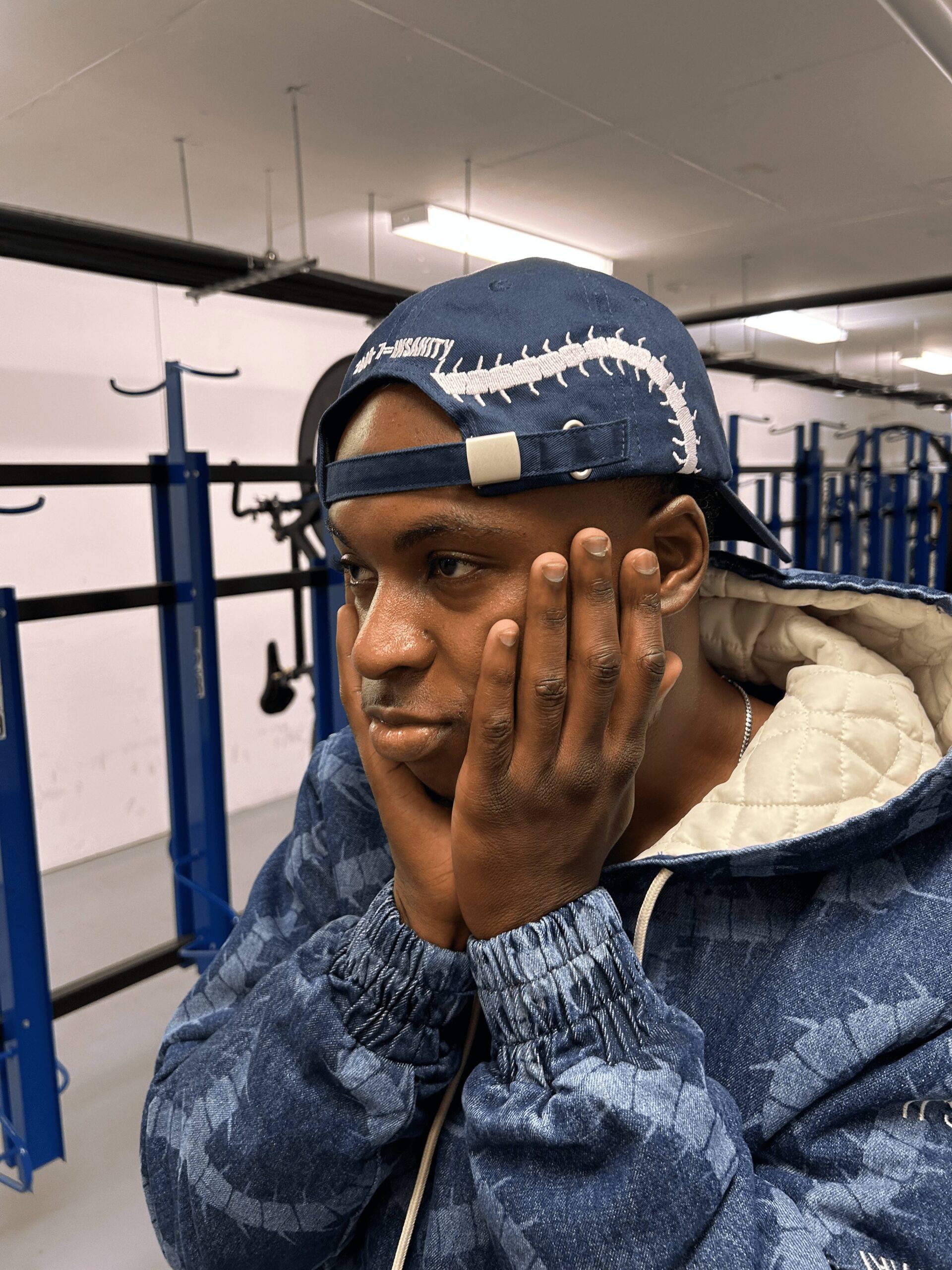 The hat is made in cotton twill with a sweatband in cotton fabric. Embroidery design on the front. Adjustable tab at the back with metal fastener.