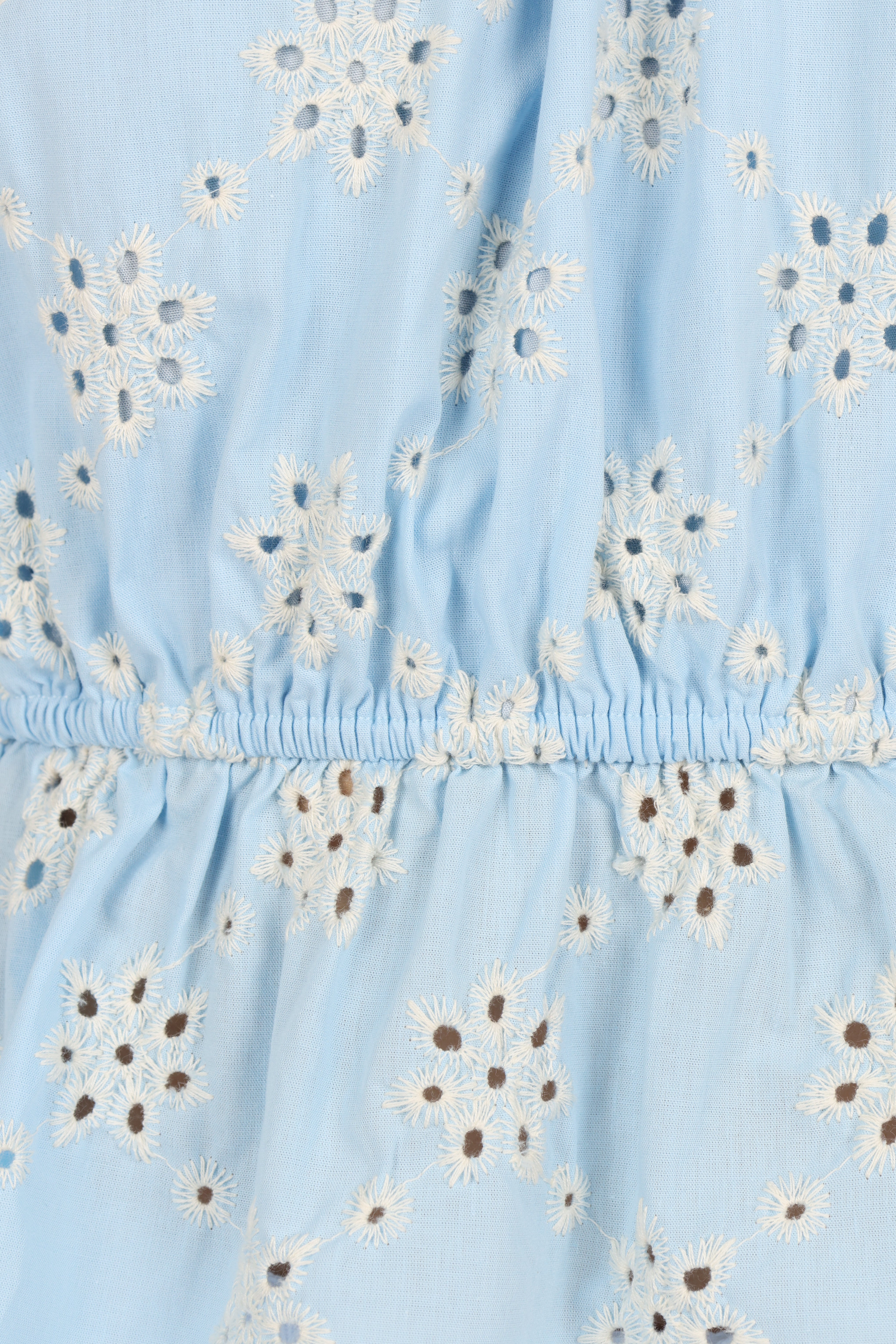 | DETAILS This peplum top is the perfect way to lend a touch of fresh style to your look! The classic round neckline and embroidered floral feature add just the right amount of detail, while the open back adds a modern touch.