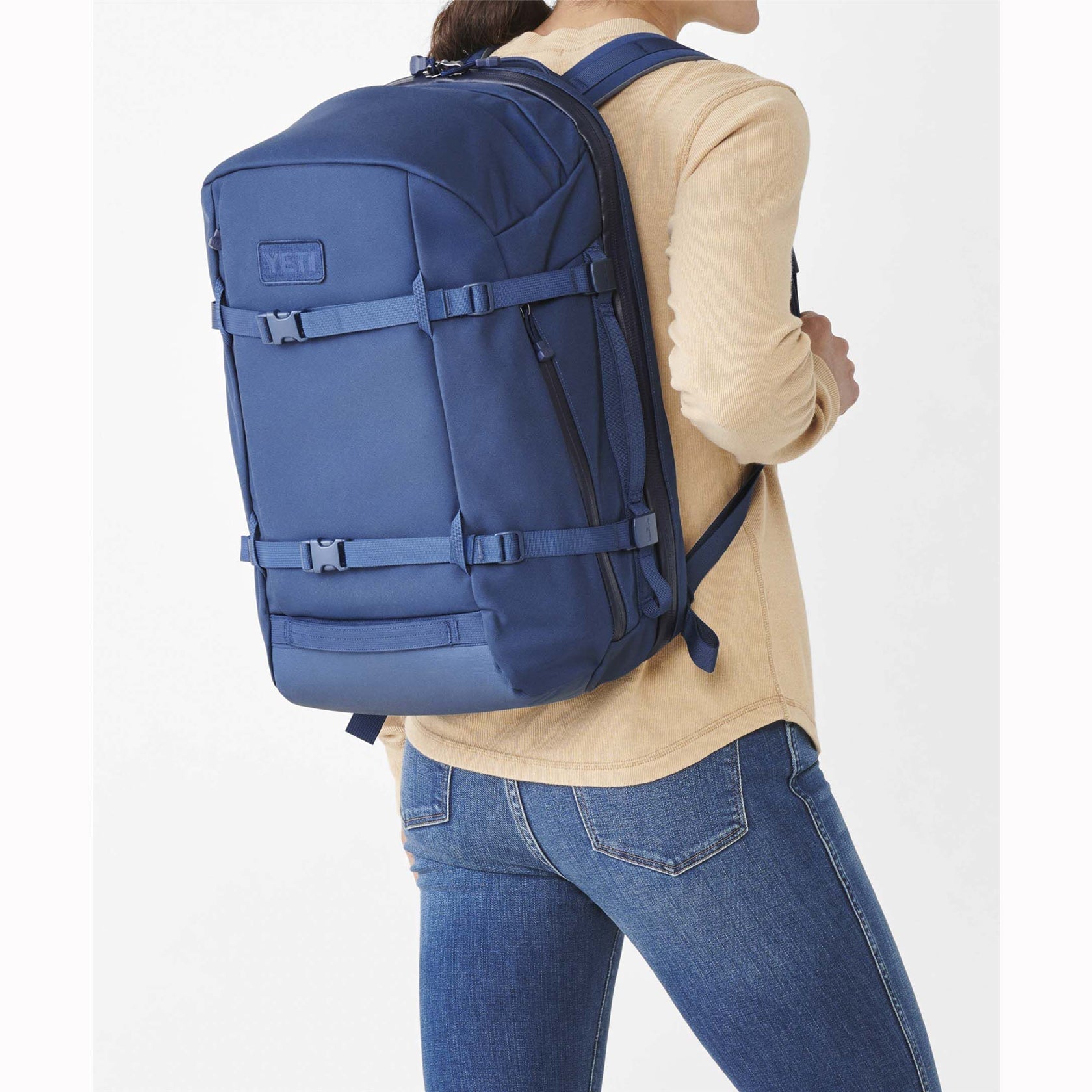 The Crossroads 35L Backpack is a high-capacity vault for your clothes, snack and travel gear. This is the one-bagger you'll depend on to carry you through long workdays that demand a lot of gear and weekend trips where you'd prefer to skip baggage claim. A clamshell opening combines the 180??, fold-open packing convenience of a suitcase with the portable ease of a backpack. When travel calls for the addition of roller luggage, secure your backpack to the top of your bag with the luggage pass-thru sleeve. The water and abrasion-resistant TuffSkin Nylon let?��s you go farther than any backpack you?��ve had before.