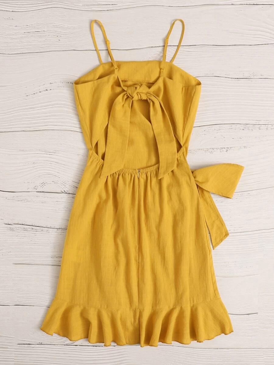 Cut Out Tie Back Ruffle Trim Wrap Hem Slip Dress6
