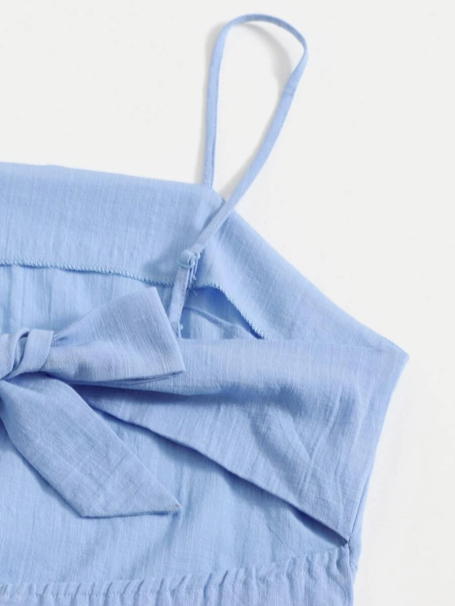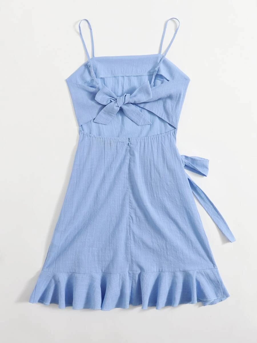 • Cut Out Tie Back Ruffle Trim Wrap Hem Slip Dress6