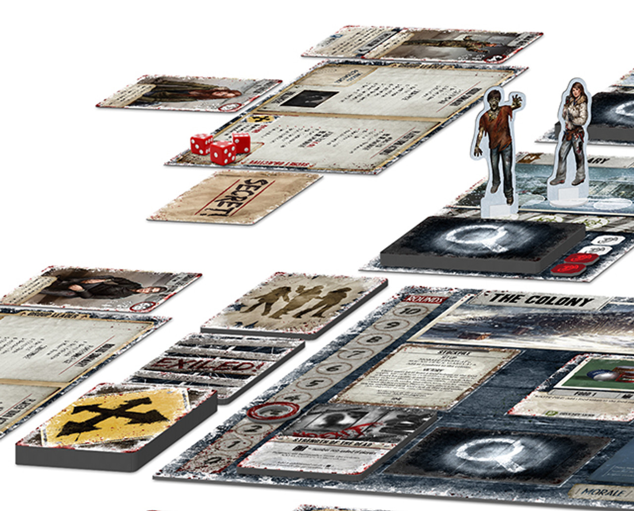 Dead of Winter is the first game in the Crossroads series, designed by Isaac Vega and Jon Gilmour. It puts 2-5 players together in a small, weakened colony of survivors in a world where most of humanity are either dead or diseased, flesh-craving monsters. Each player leads a faction of survivors with dozens of different characters in the game.