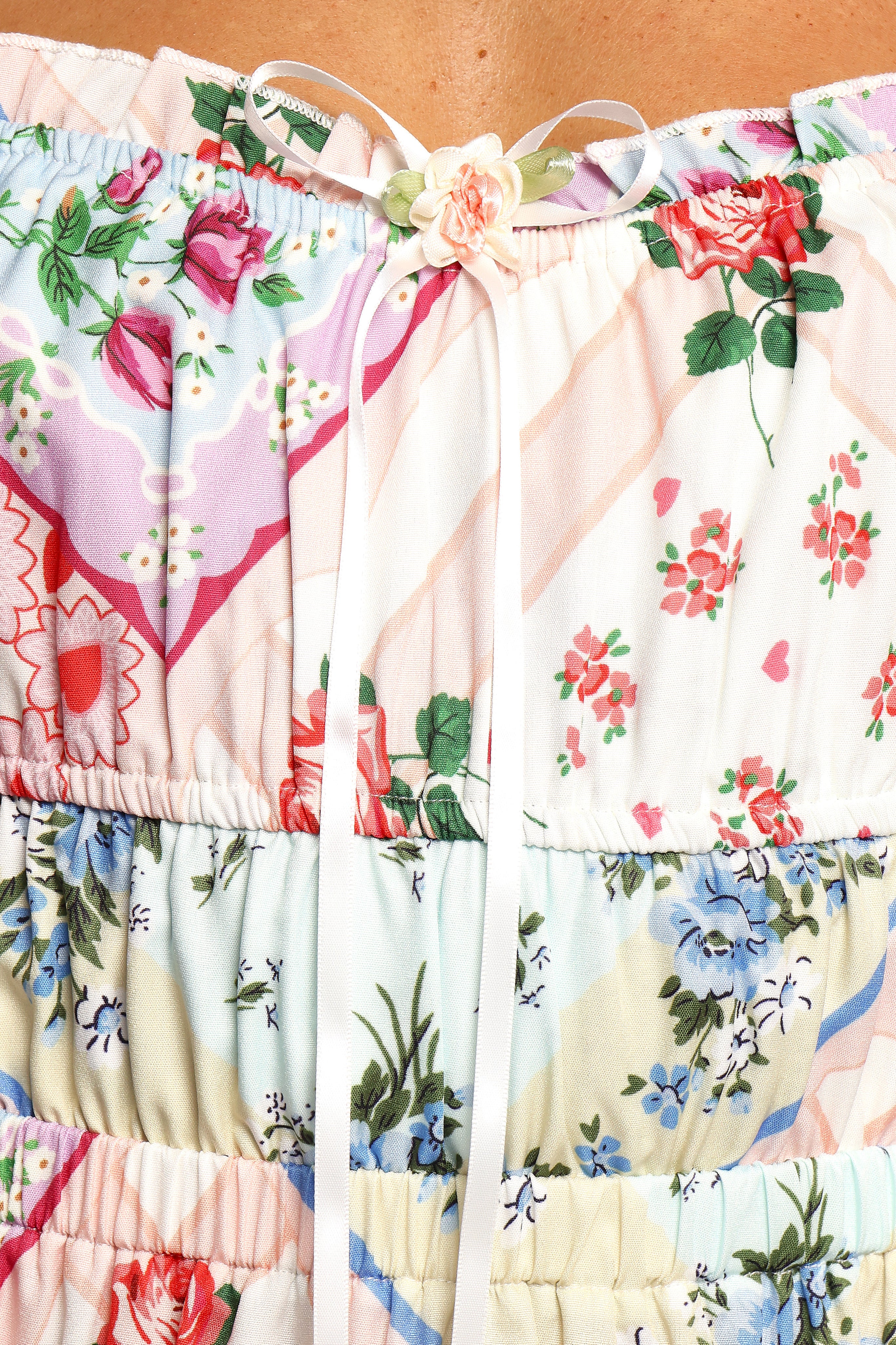DETAILS The Delfina Midi Dress - Multi is a floral dream come to life. With its graceful midi length and playful square neckline, this dress exudes effortless charm. The thin adjustable straps offer a customizable fit, while the elasticized neckline and bust ensure both comfort and style.
