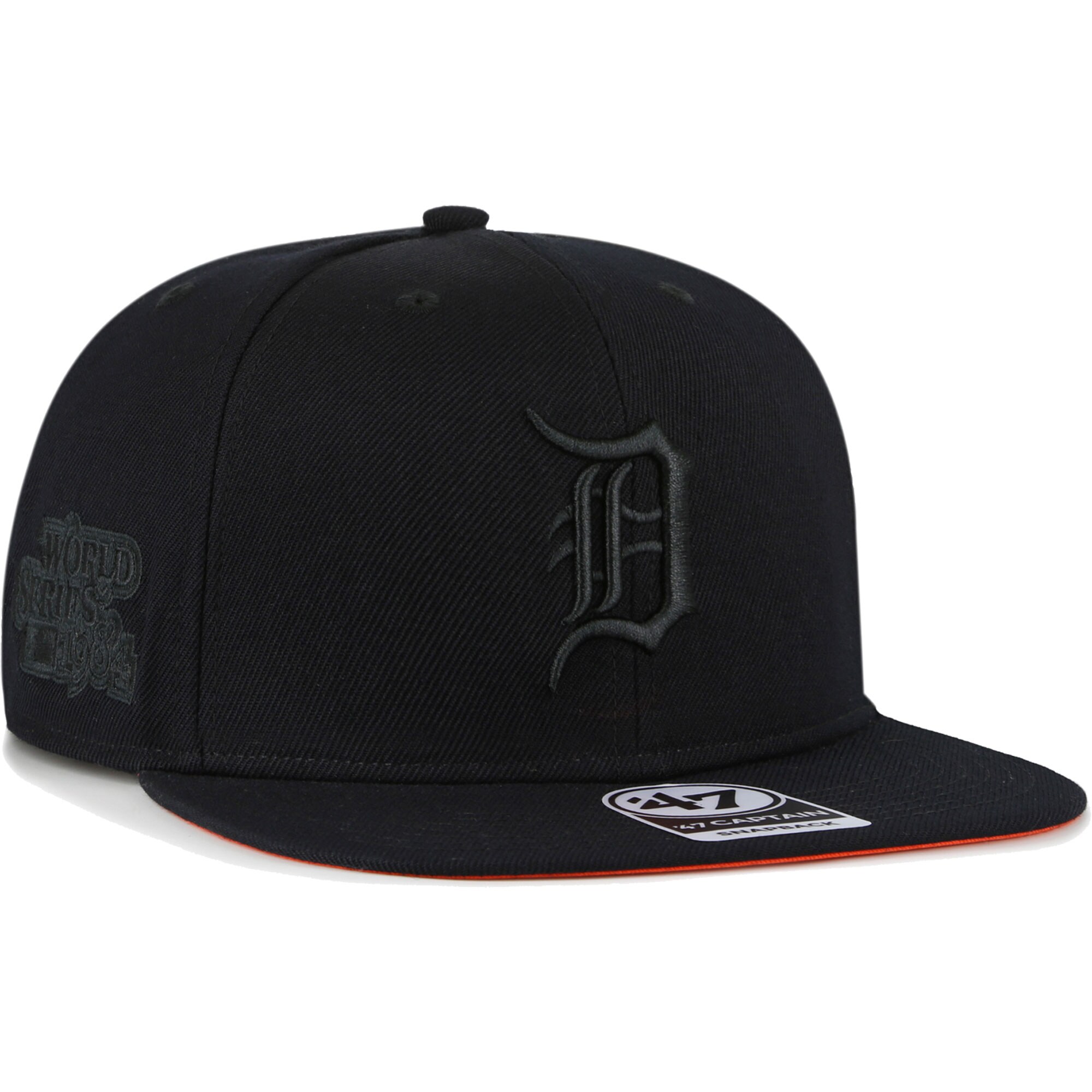 When the Detroit Tigers hit the field add a subtle touch of team spirit with this Black on Black Sure Shot Captain hat. Crafted by '47 this bold cap features embroidered graphics and a vibrant contrast-color undervisor to further elevate your style and pride. With a snapback closure classic construction and flat bill this cap will fit perfectly with any Detroit Tigers gear.