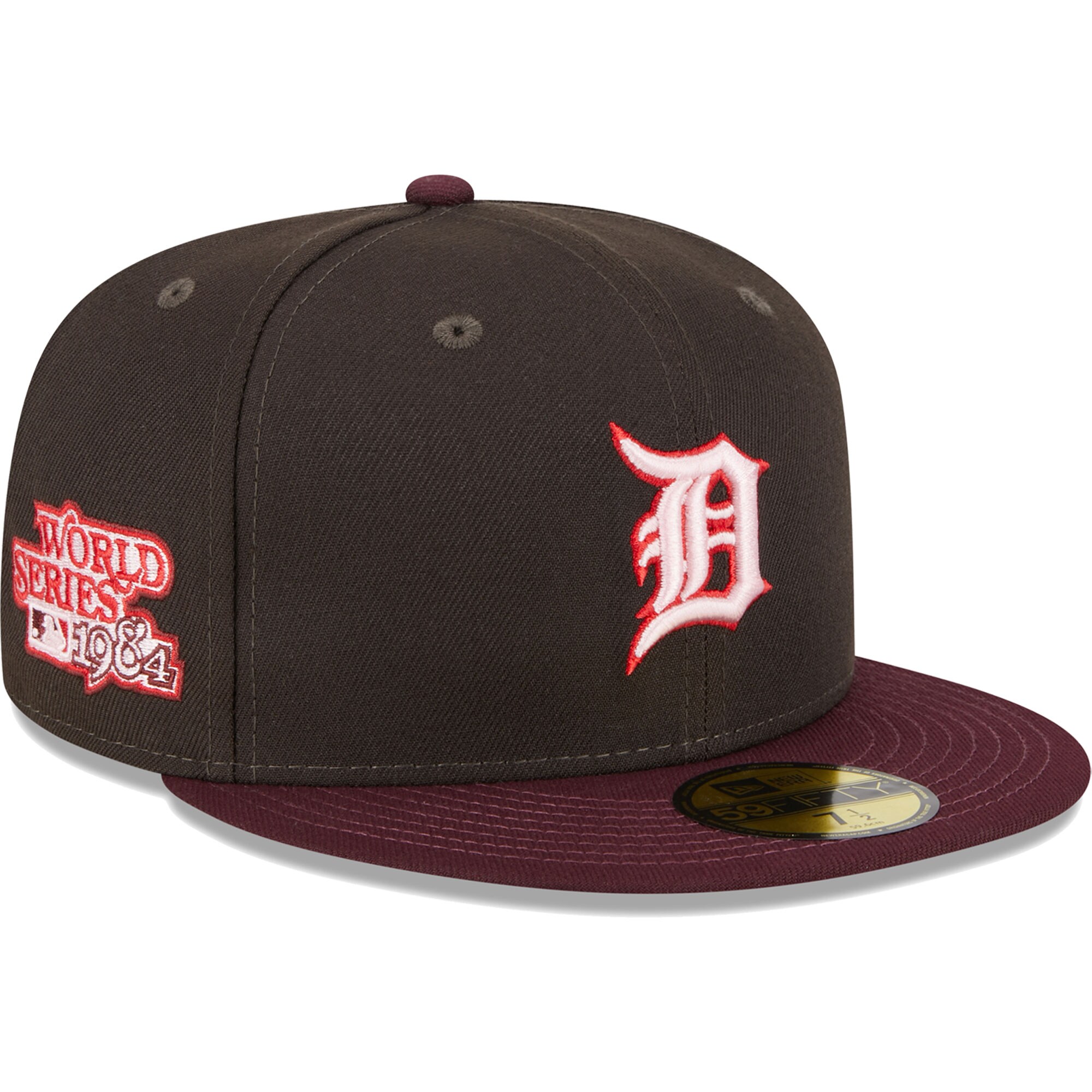 Add a tasteful piece of Detroit Tigers gear to your collection by picking up this Chocolate Strawberry 59FIFTY hat from New Era. It features the team's logo embroidered on the front and a celebratory patch on the right side. The red undervisor on this fitted cap adds a pop of color giving it a unique look that is perfect to go along with any Detroit Tigers game day outfit.
