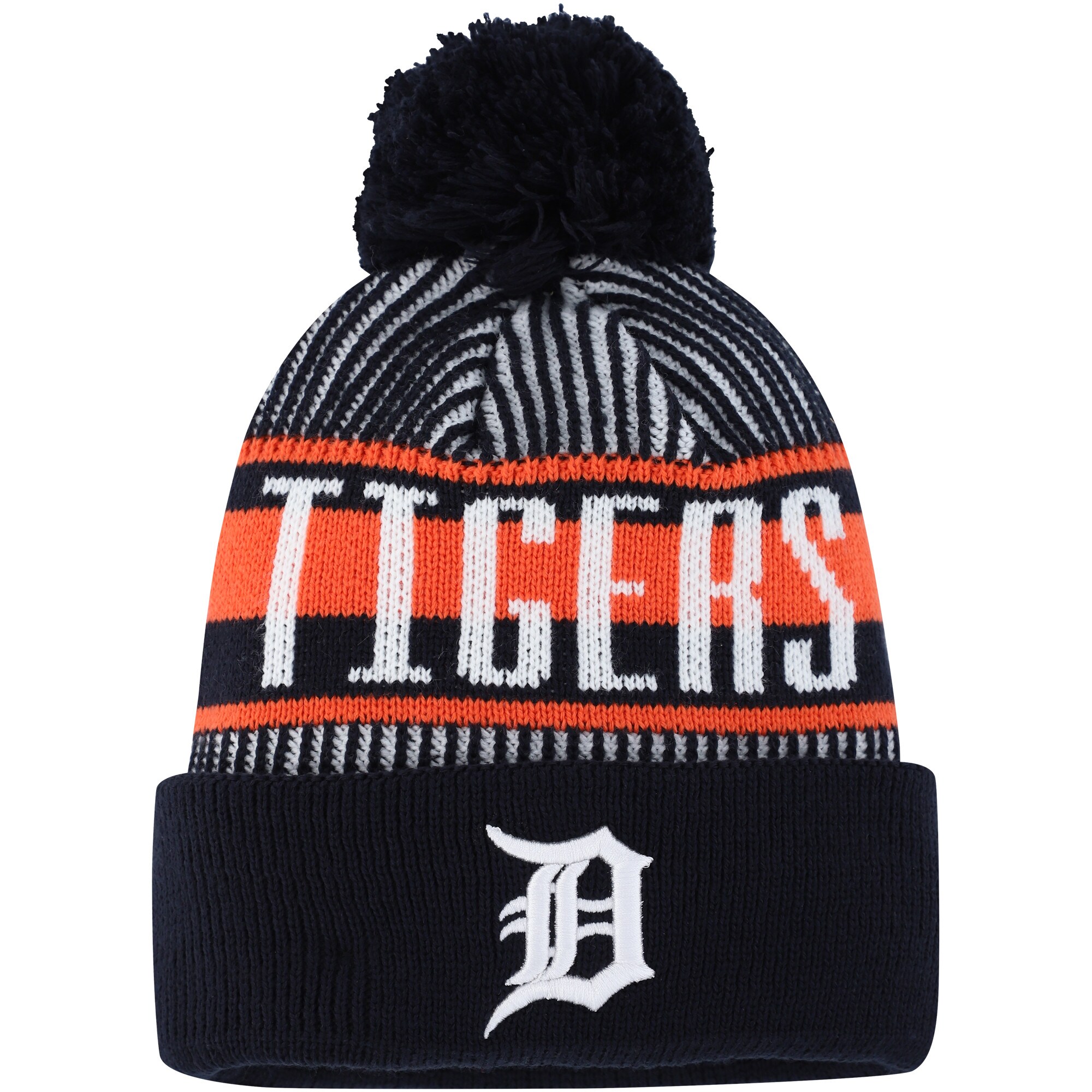 Top off your kiddo's Detroit Tigers fandom while leveling up their style with this New Era Striped cuffed hat. Thanks to its toasty construction and stretchy fabric this is the perfect cap for chilly game days. Additionally the striking graphics and fun pom on top bring iconic Detroit Tigers flair to their blossoming spirit making it the ultimate finishing touch to any outfit your youngster puts together.