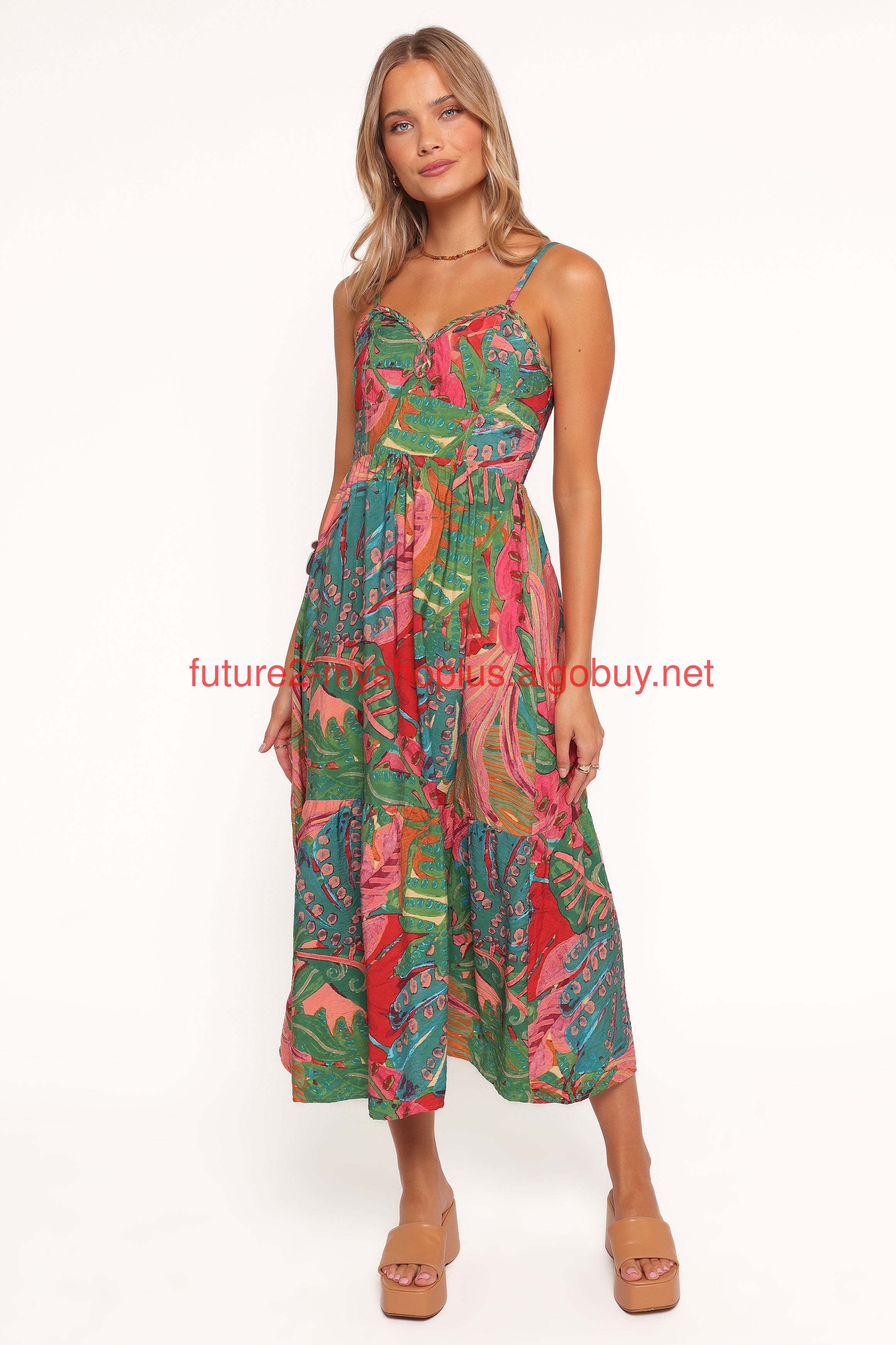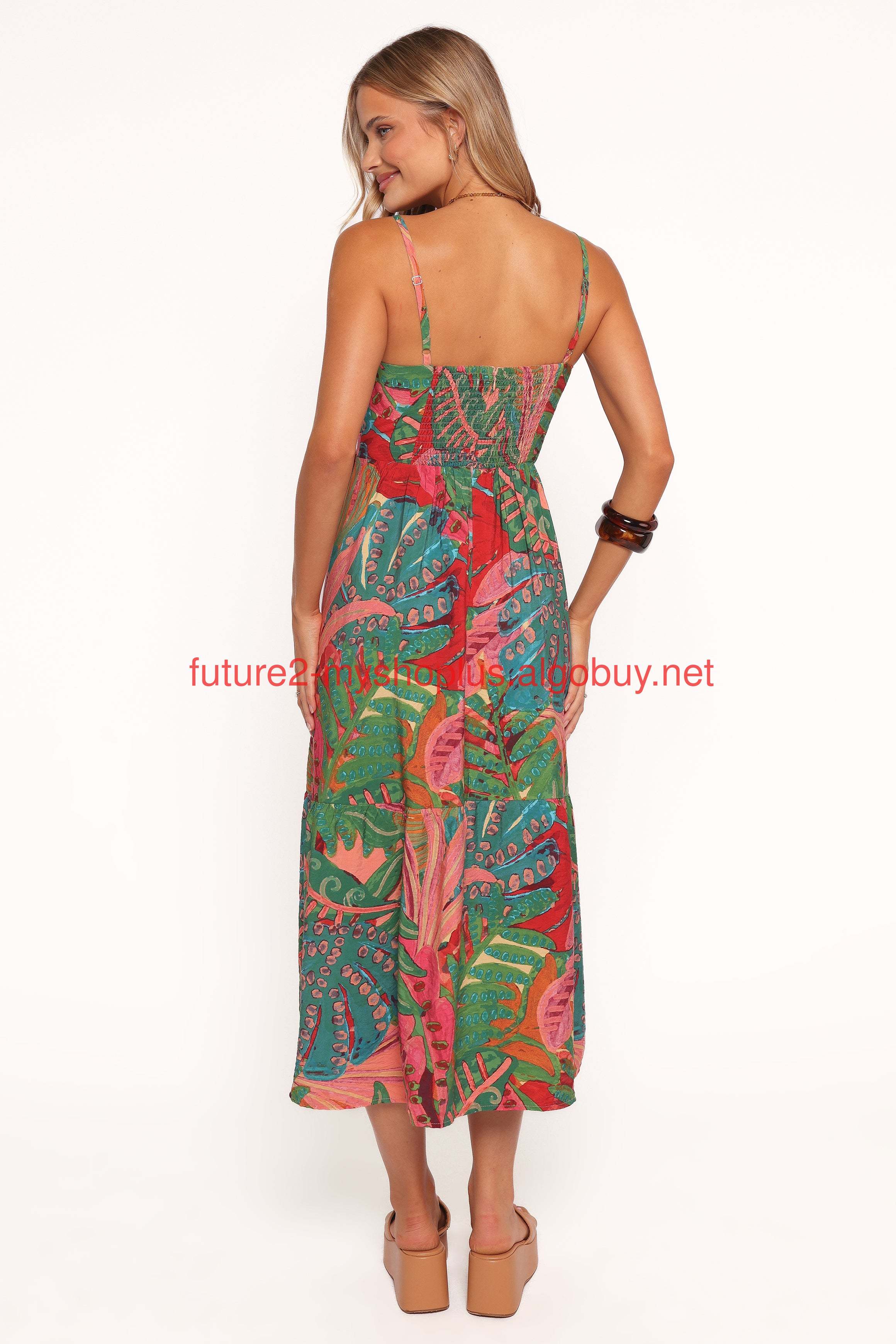DETAILS Turn heads and brighten your day with the Eleonora Midi Dress in Calypso Coral. This effortless piece combines a chic midi length with a flattering v-neckline and thin adjustable straps for a custom fit.