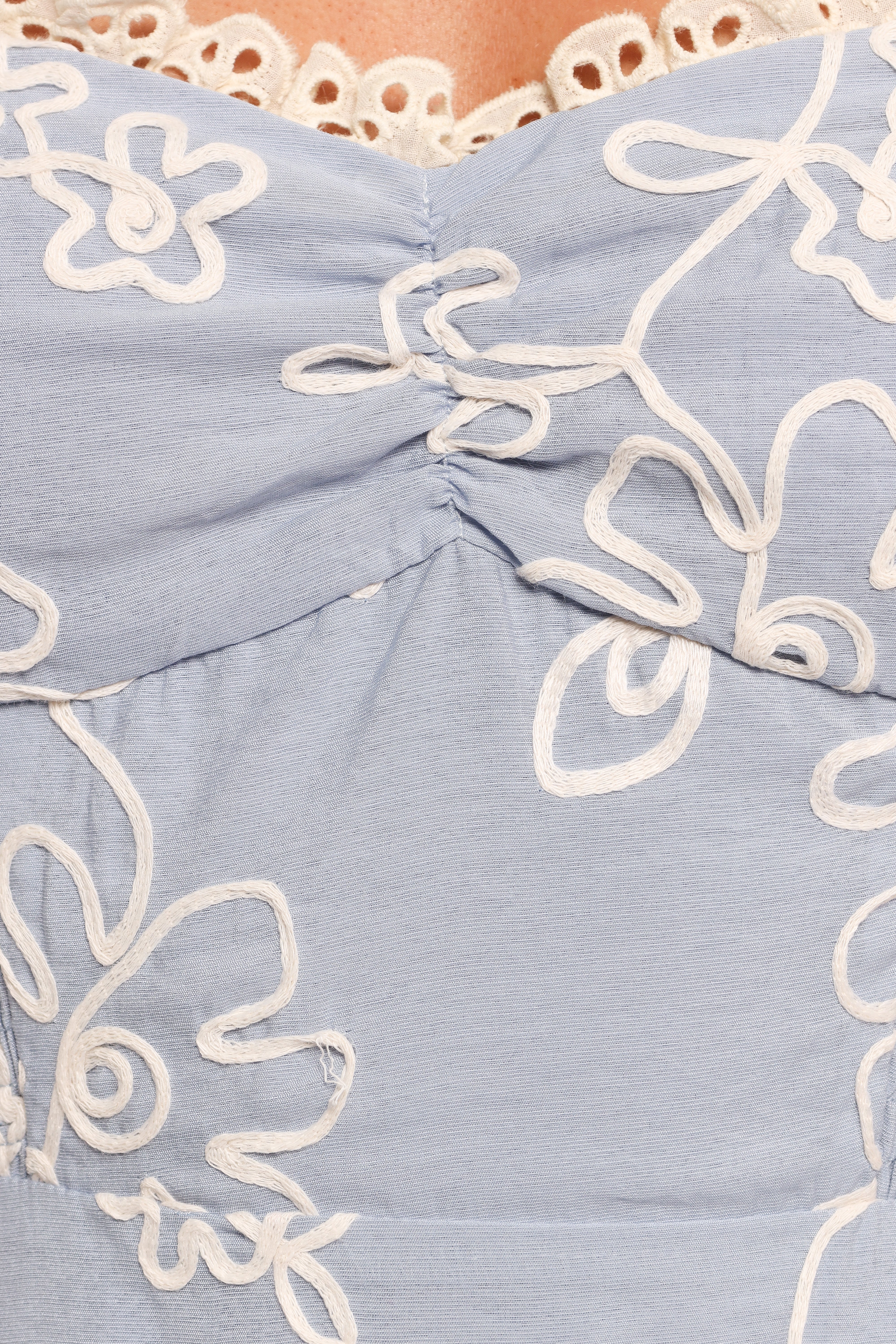 DETAILS This delightful dress offers a flattering midi length that skims gracefully over your silhouette, ending in a playful tiered hemline that adds just the right amount of movement. The sweetheart neckline frames your face beautifully, while elasticised straps with ruffle details provide a touch of whimsy and comfort.