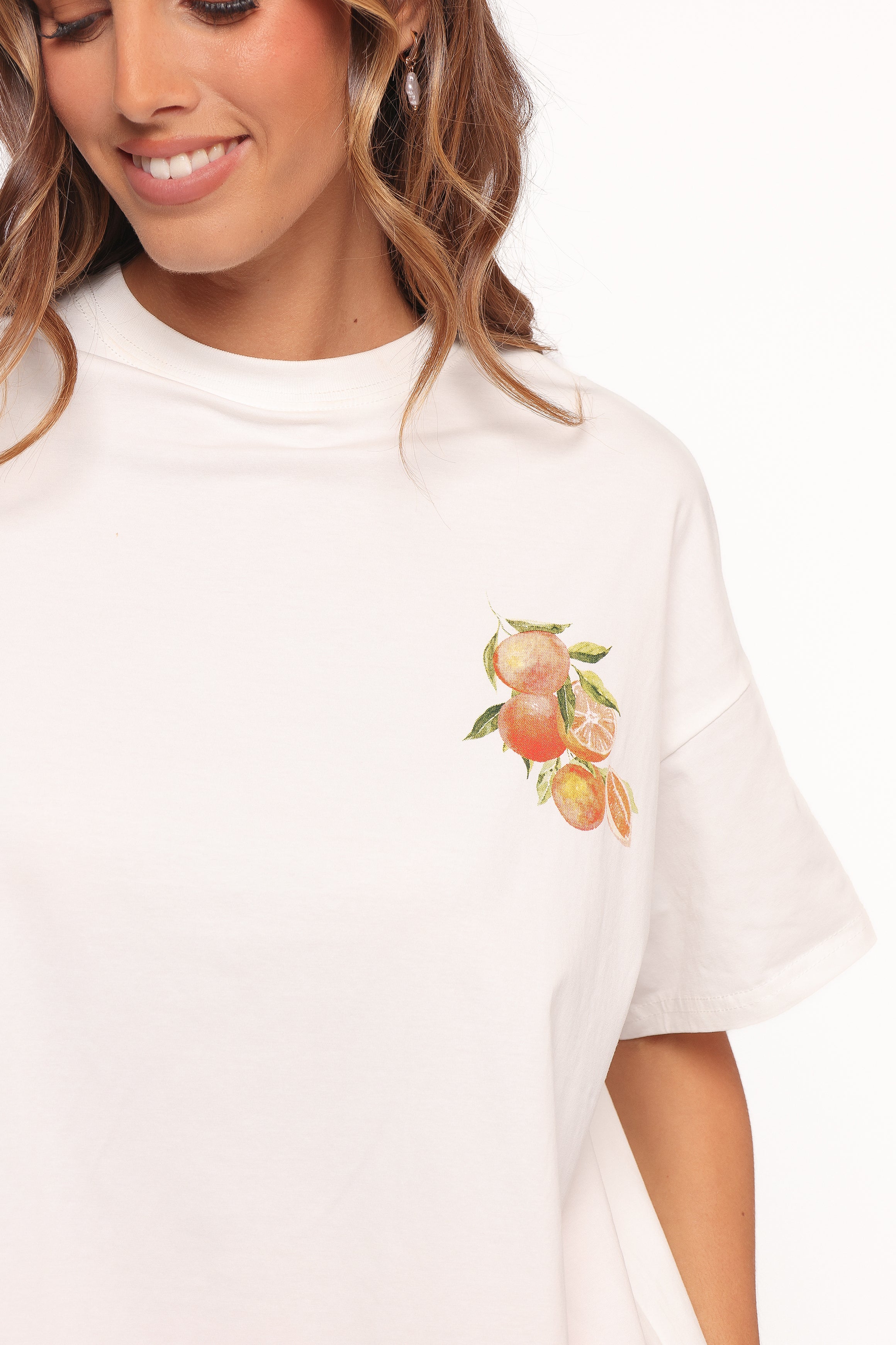 DETAILS Bring effortless style to your everyday wardrobe with the Emilia Short Set in Aperol Orange. This matching tee and shorts combo is all about easy chic, featuring a relaxed oversized fit with a round neckline and short sleeves for ultimate comfort.
