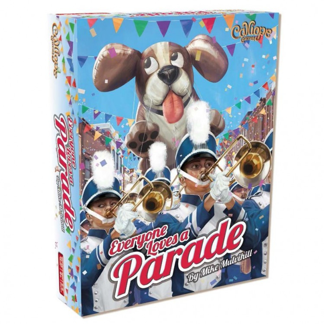 In Everyone Loves A Parade, 2-6 players act as float designers, selecting colorful decoration cards (flowers, balloons, and flags) to add to their floats and wow the crowd, which is represented by dice showing colors and items they wish to see.