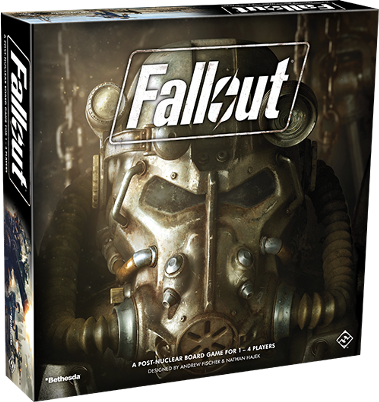 Fallout is an adventure board game based on the hit video game series by Bethesda Softworks. In the game, one to four survivors will begin at the edge of an undiscovered landscape with one primary objective: to survive. Staying alive, however, is just the beginning. Players must explore the hidden map, fight ferocious enemies and build the skills of their survivor as they attempt to complete challenging quests and balance the feuding factions within the game. To win the game, players must collect influence, thereby securing their spot in a society struggling to thrive in a world forever changed. Welcome to the Wasteland.