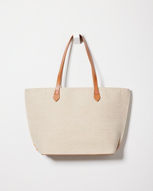Meet the tote that packs all the essentials so you can bring the fiesta. Large enough for your next weekend getaway and light enough to carry every day, this bag's faux-leather bottom base, storage pockets, and island-inspired embroidery make it work for the boardwalk and beyond.