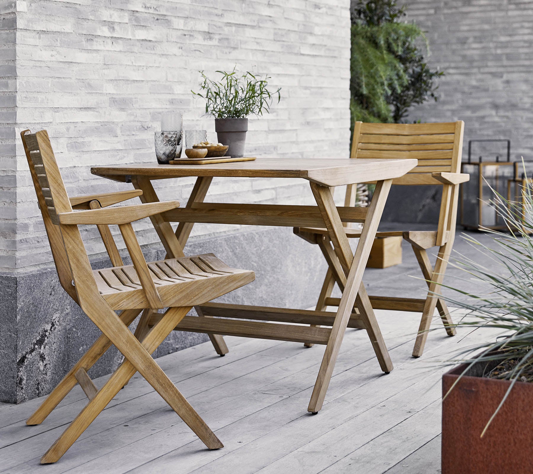 Flip is a folding chair made of teak. Flip is a new interpretation of the classic folding chairs with an emphasis on superb design and quality. The Danish duo Strand+Hvass are the designers behind the attractive design. The warm teak adds an inviting glow to the simple and elegant folding chairs. Flip folding chairs are ideal in cramped outdoor spaces with limited storage space. The folding chairs are also available with cushions that provide added comfort.