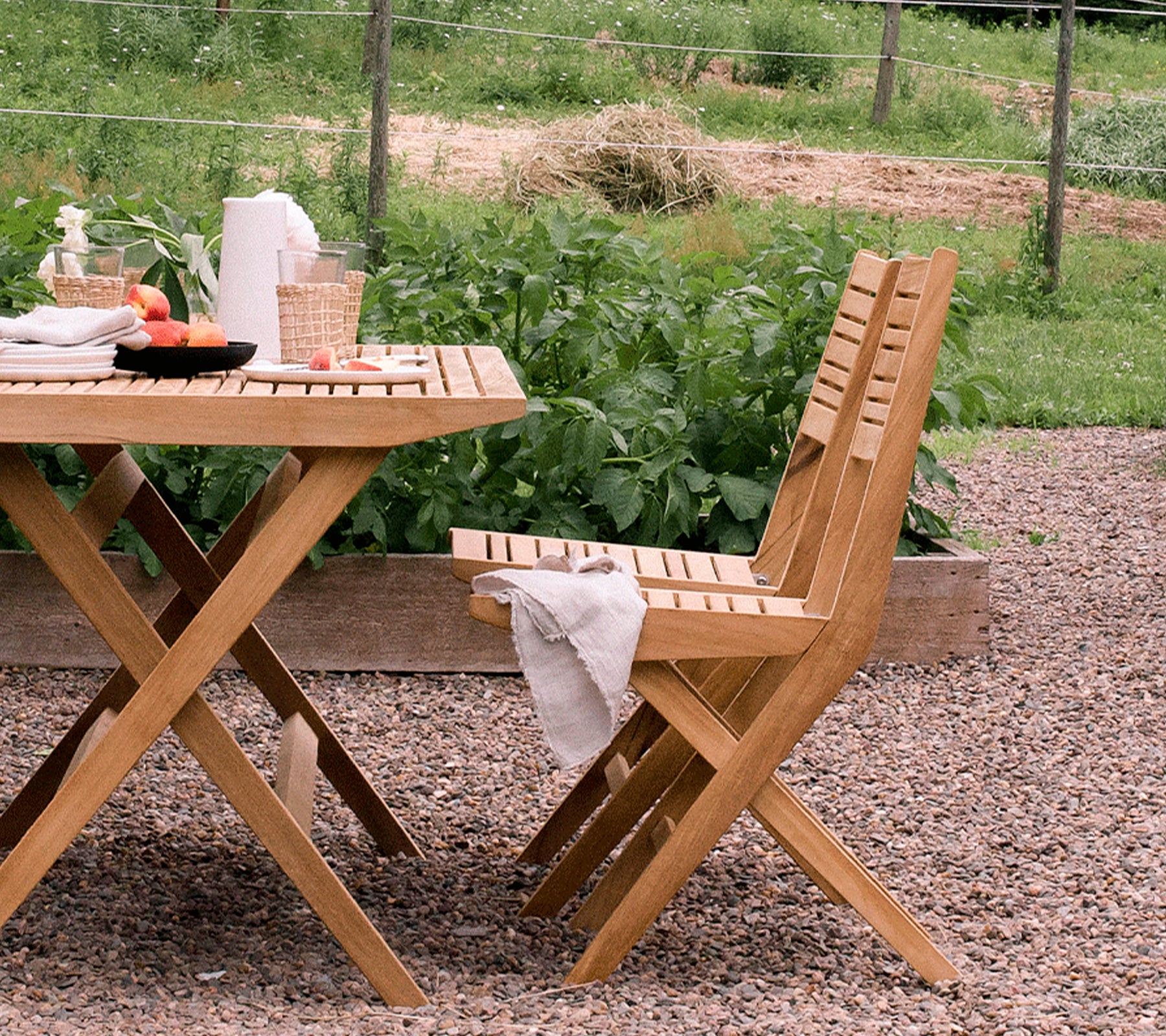 Flip is a folding chair made of teak. Flip is a new interpretation of the classic folding chairs with an emphasis on superb design and quality. The Danish duo Strand+Hvass are the designers behind the attractive design. The warm teak adds an inviting glow to the simple and elegant folding chairs. Flip folding chairs are ideal in cramped outdoor spaces with limited storage space. The folding chairs are also available with cushions that provide added comfort.