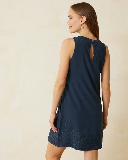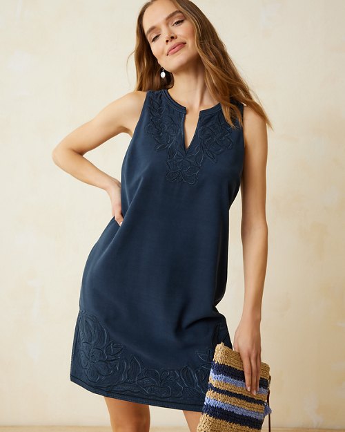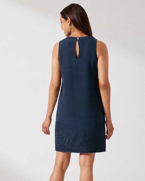 Detailed floral embroidery sets this silk shift dress apart from the rest. With its soft, flowy silhouette and clean, simple, solid design, this is the chic-looking sundress you've been dreaming of.