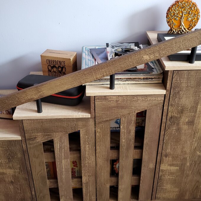 - The angle between the top of the cabinet and the wood rail: is 20 degrees.