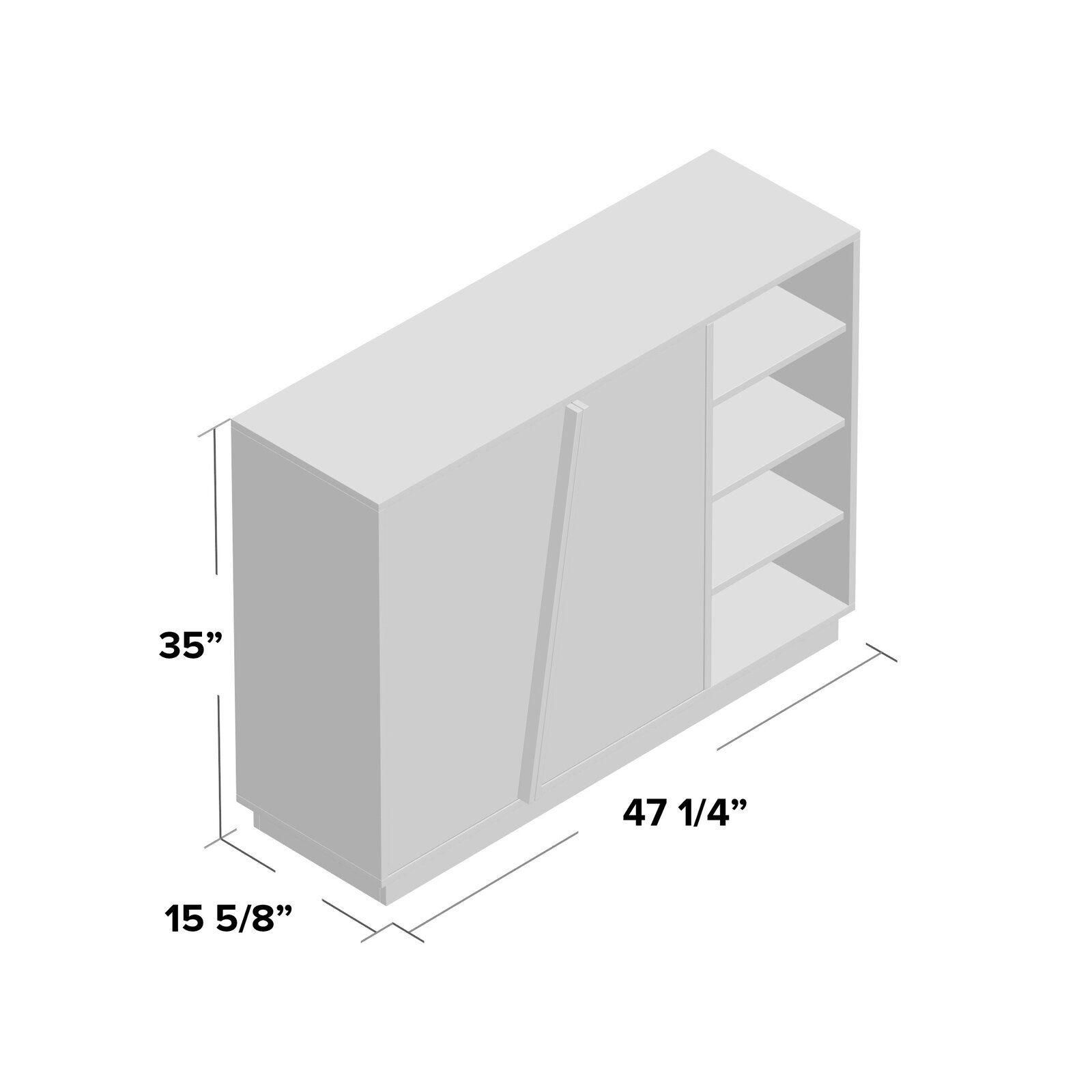 This clean-lined 16-pair shoe storage cabinet is the perfect spot to organize and store away all your boots, flats, and sneakers. It's crafted from engineered wood and features a two-tone white and brown finish that complements your modern decor. Four open shelves on the side give you all the room you need for your favorite footwear. Plus, two double doors in the middle open up to reveal additional shelf space for everything from heels to flip flops.