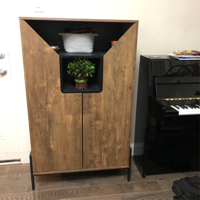 Get organized! This 2-door shoe cabinet stores plenty of pairs of your favorite footwear, getting them off your floor and behind a door. Practical and functional, it's crafted from engineered wood with a natural and neutral finish for a rustic look. A great storage solution for your walk-in closet, entryway, garage, or any other area, it allows you to put your best foot forward when it comes to a clean home and helps you pick out your shoes for the day much faster.