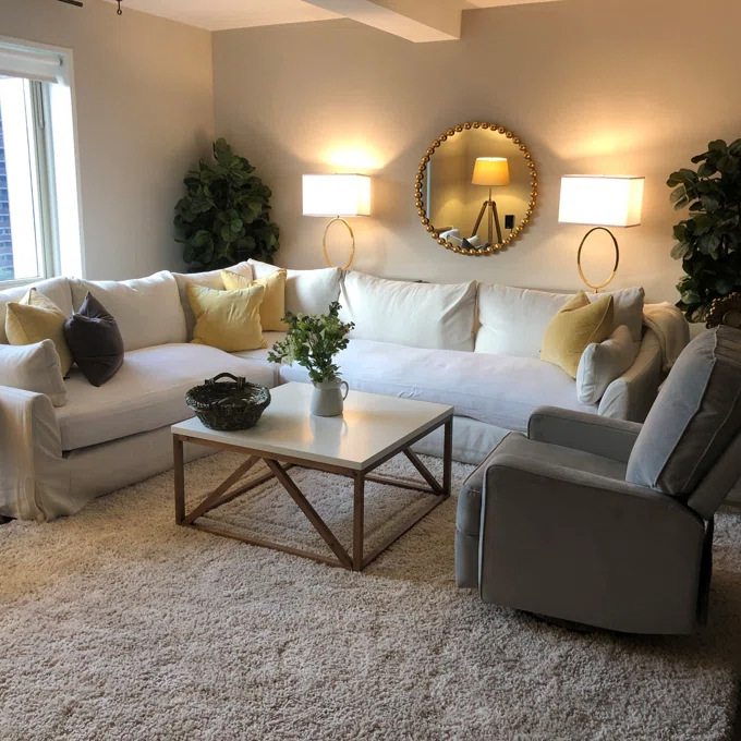 - The white color option offers a soft-to-touch linen upholstery. The remaining color options offer a faux velvet upholstery.