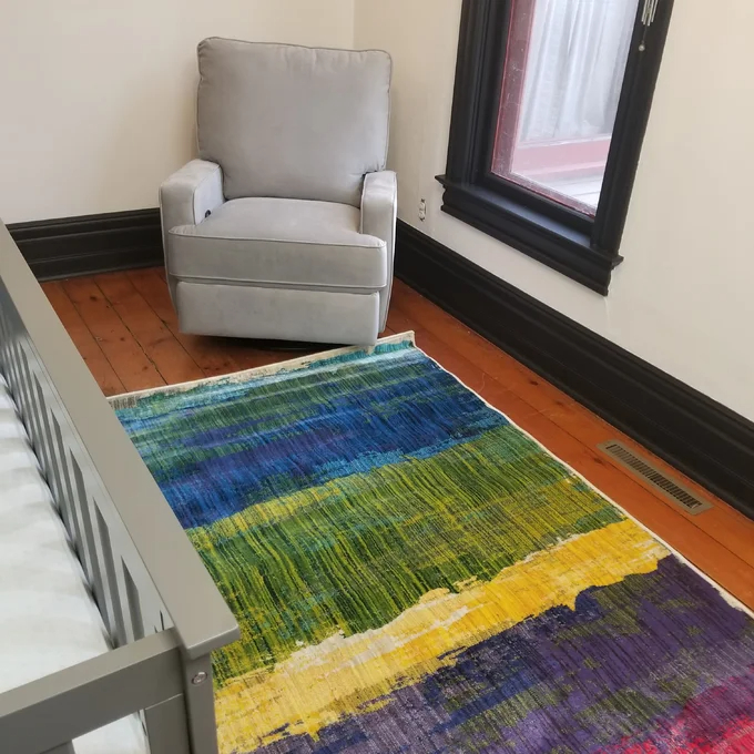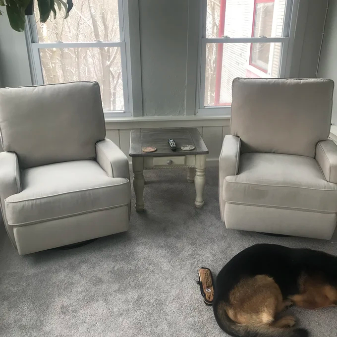 This product is the ultimate nursery room seating. With comfort features such as a reclining mechanism and a supportive spring core foam-filled seat, you will love spending even more time in the nursery tending to your child. The hidden easy-pull reclining mechanism can be pulled out and tucked back in between the seat and armrest, making it out of sight yet within easy reach. Simply pull on the reclining mechanism, and let go at the preferred reclined position for a truly personalized and comfortable seating setting. The Abingdon Swivel Gliding Recliner leg rest is padded to enjoy resting with your legs propped up. The enclosed ball-bearing mechanism allows for both a rotating swivel function and a smooth gliding motion, giving you a full range of movement and convenience. The square silhouette, track arm design, and welt trim detail are touches that enhance the overall look of the recliner. Choose amongst a number of colors to suit your decor and taste and enjoy quiet moments with your baby for years to come.