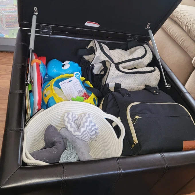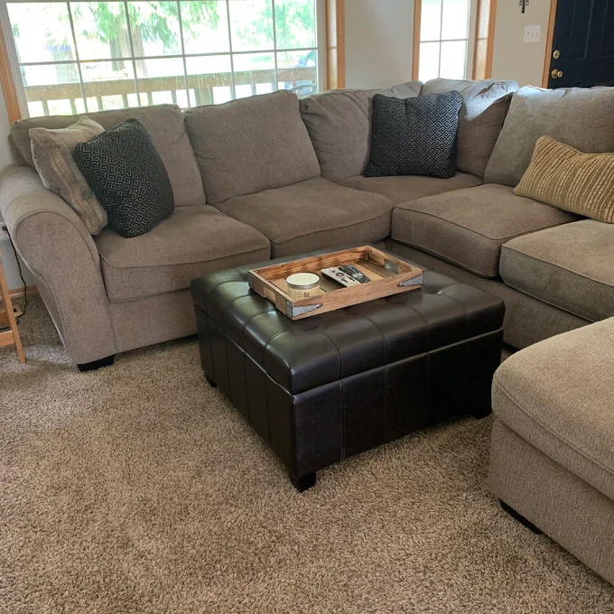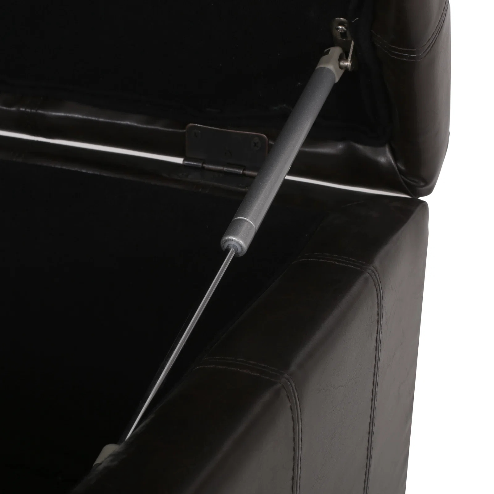 Unclutter your home and elevate the style of your decor all in one go by bringing home our charming storage ottoman. This ottoman features smooth, refined upholstery and delicate tufted waffle stitching in its lid which makes this perfect for any room in your home in need of a handy and contemporary upgrade. Finished with a simple, clean design and soft-closing pressure hinges, our ottoman will blend seamlessly with your interior space while also boasting convenient storage space for you to utilize.