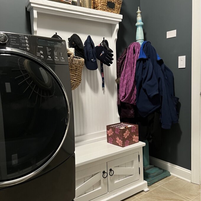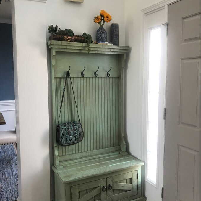 Q:"Is there a flat top piece on the top of this hall tree?" asked by Sarah