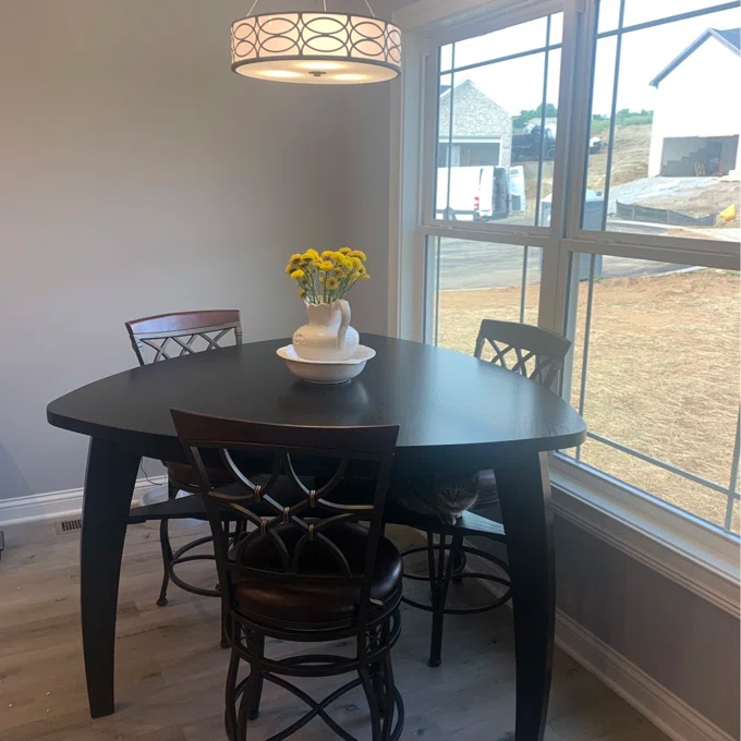 Q:"Is the full set the leatherette on chairs and bench is black?" asked by Amy