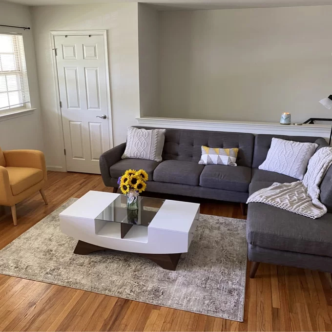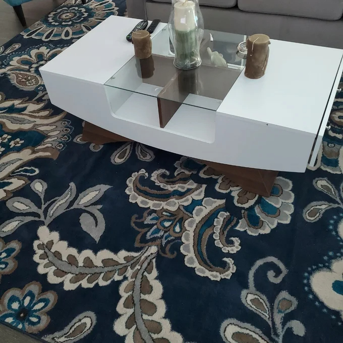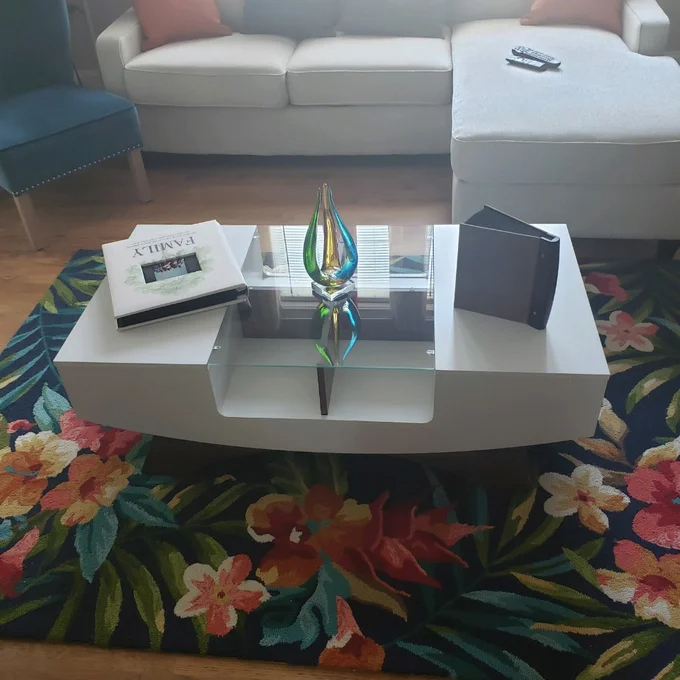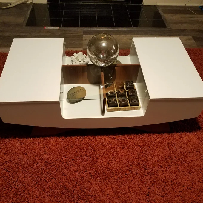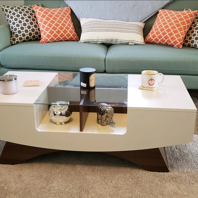 Q:"Will the coffee table fit my living room?" asked by Cam