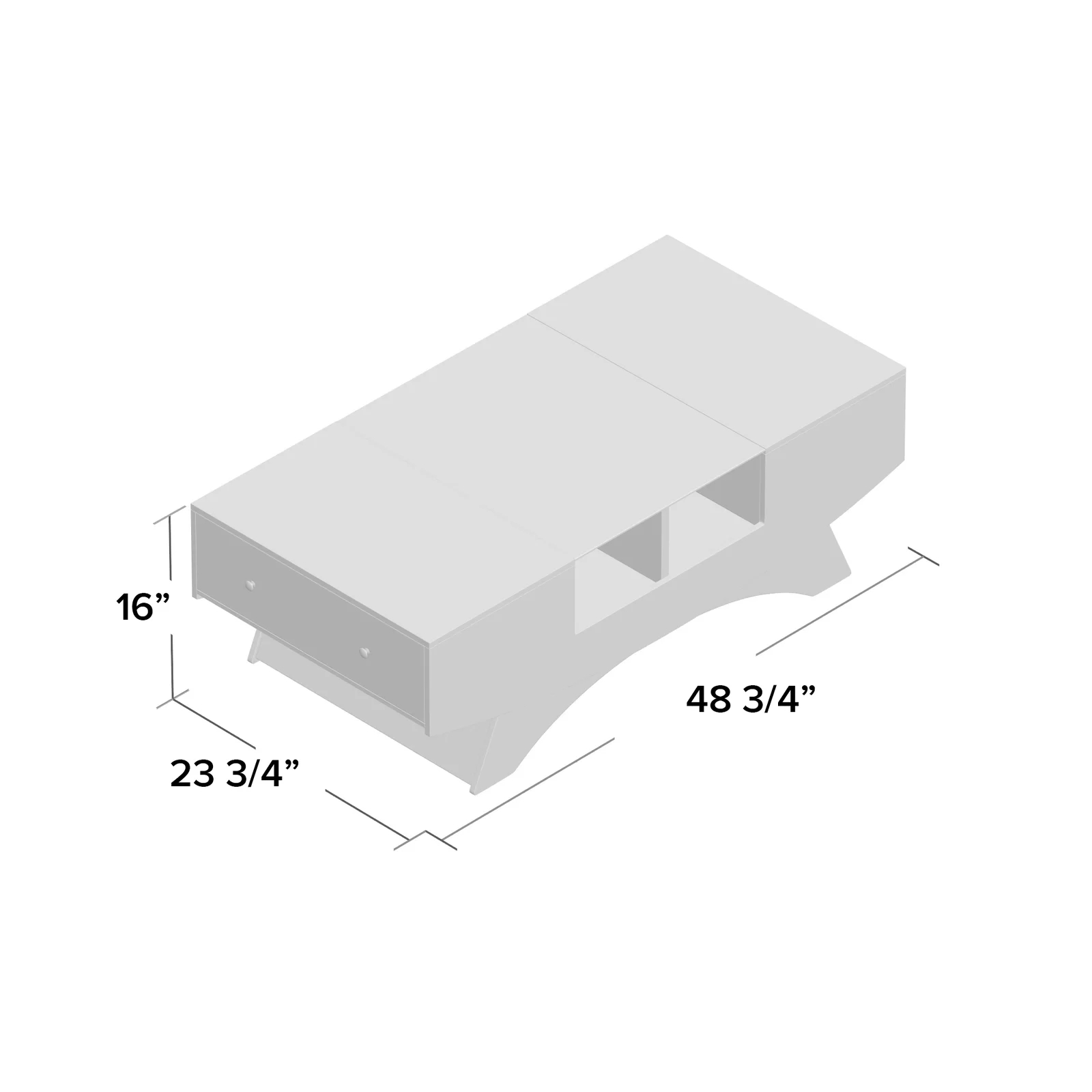 A:"To help you gauge the overall dimensions of this coffee table are 15.8" H x 48.75" L x 23.7" W."