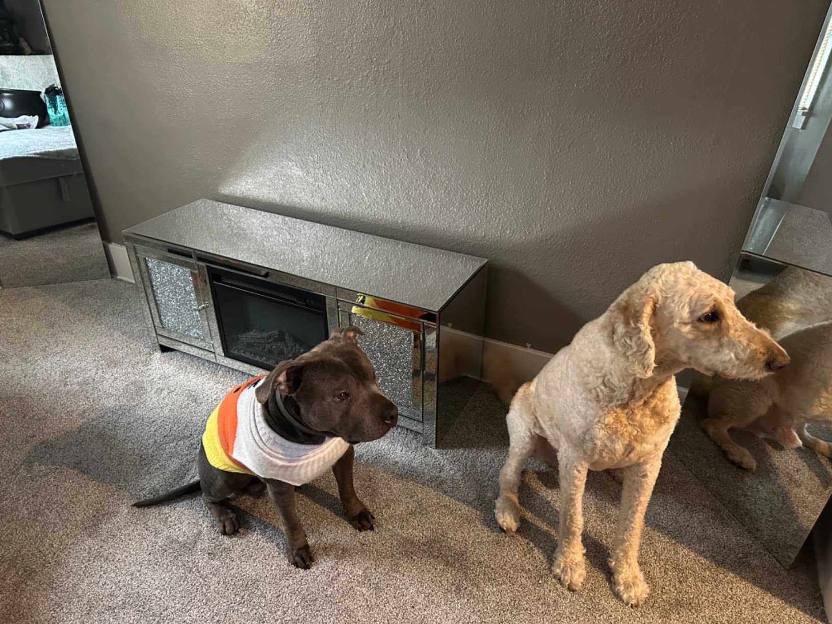 【Furniture】Mirrored Fireplace TV Stand, Mirrored Media Entertainment Center for TV up to 55 inch