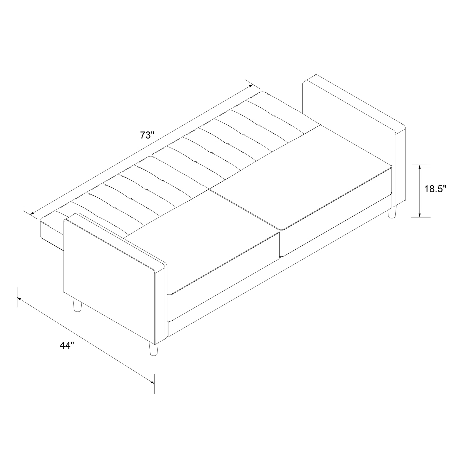 - Sleeping area: 73" L x 44" W