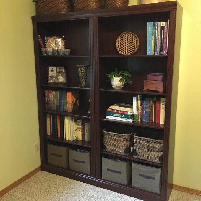 - Matching bookcases have three adjustable shelves for versatile storage and two fixed shelves for stability; each shelf supports up to 25 pounds
