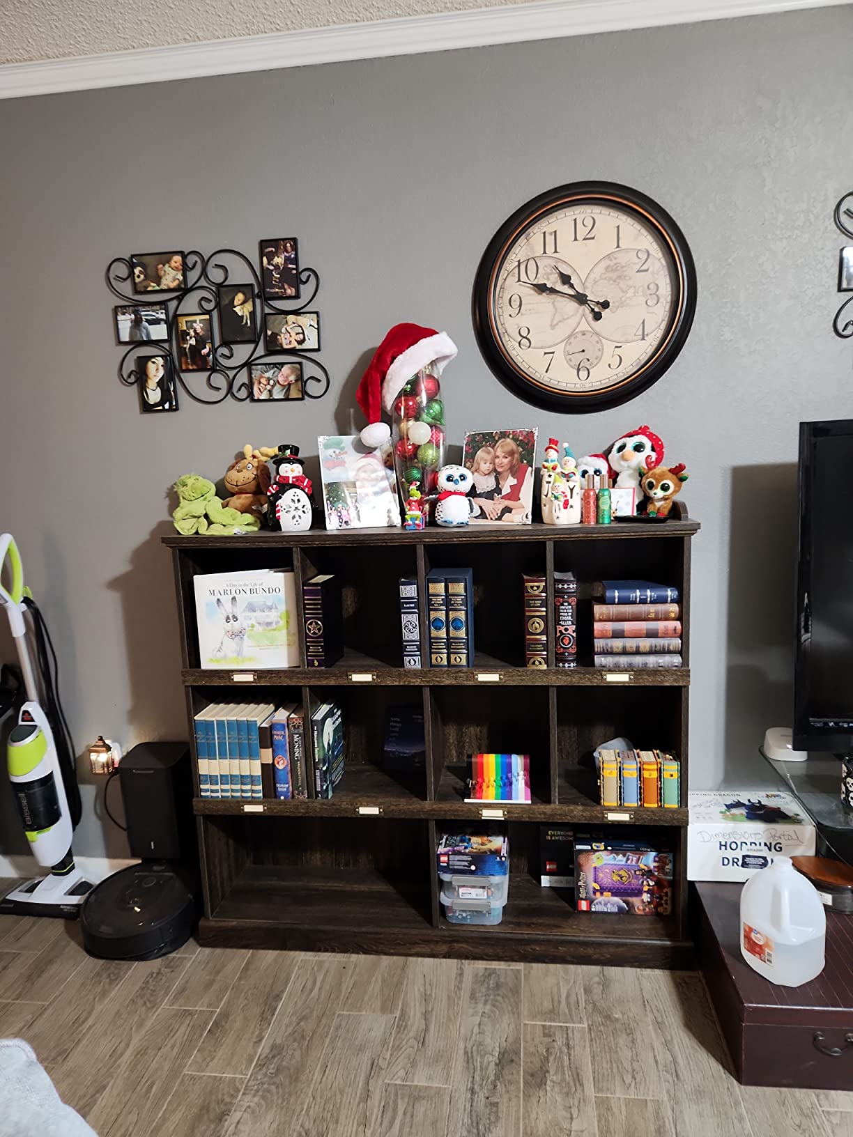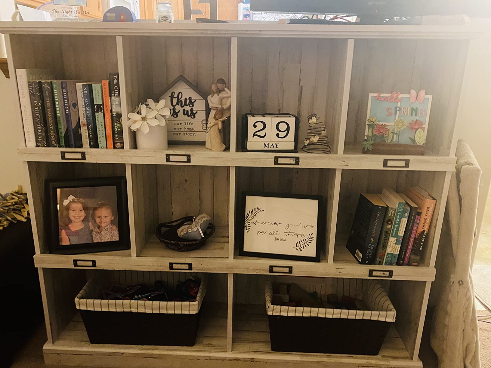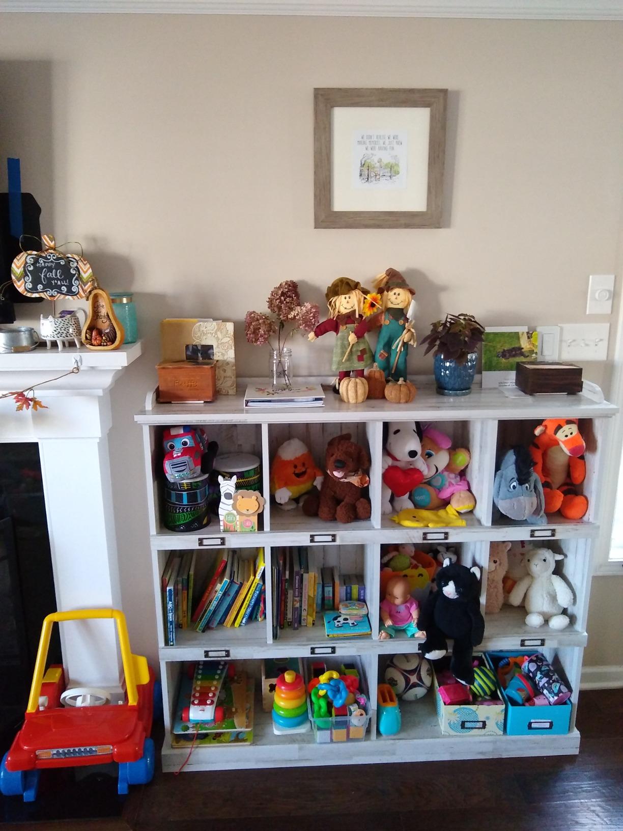 - Cubbyhole storage for books, binders, framed photos, collectibles, and more