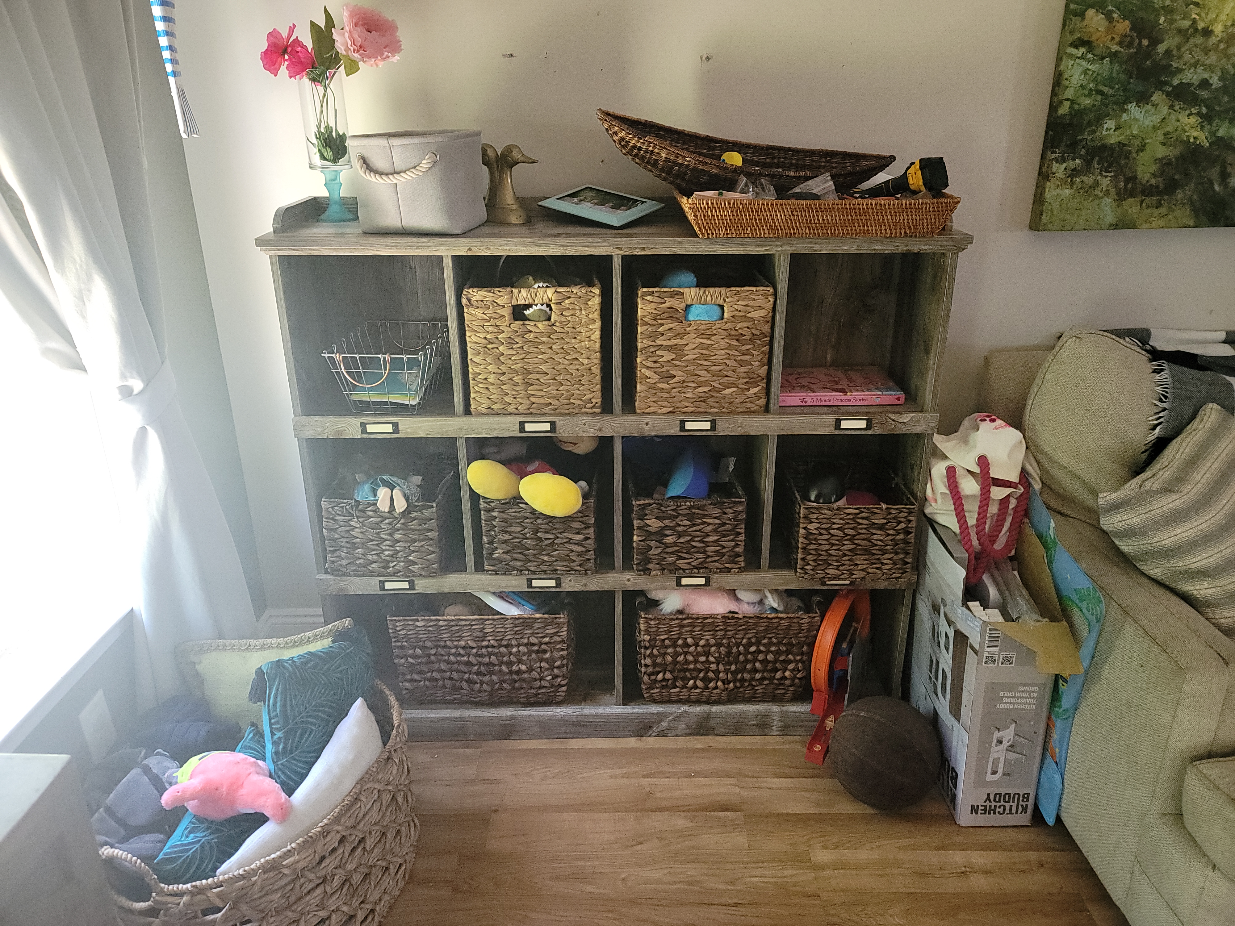 Question:What size of storage bins/baskets will fit the cubbies?