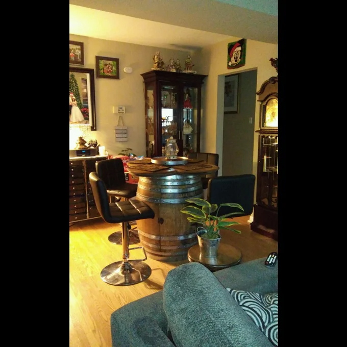 Q:"Does the table have a wine barrel head lazy Susan shelf on the inside?" asked by Melissa