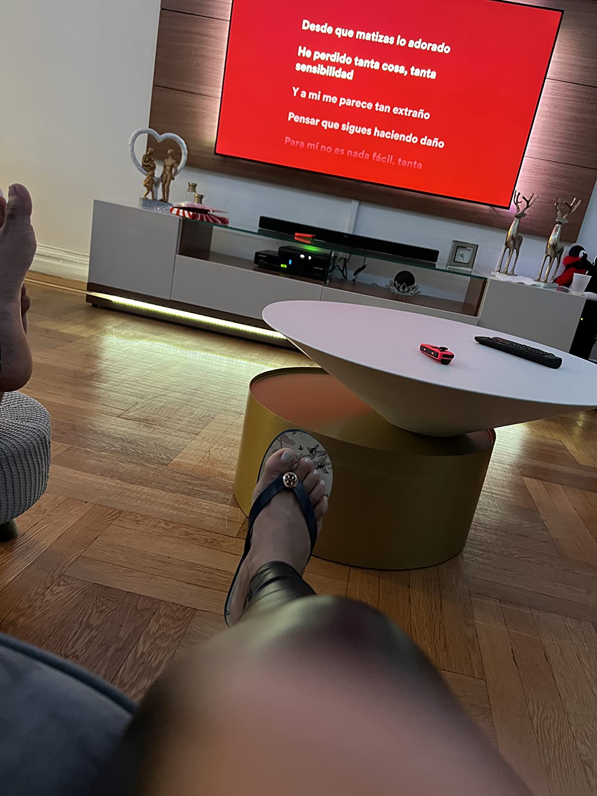 - Beautiful Theater Set with Tempered Glass Top and LED Mood Lights Gives Your TV an Elegant Appeal. The Paint Finish Features Microban Protection.