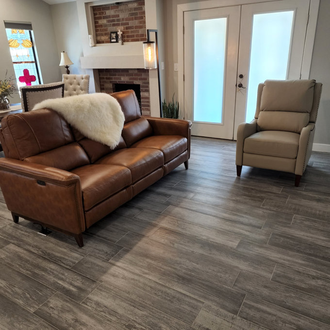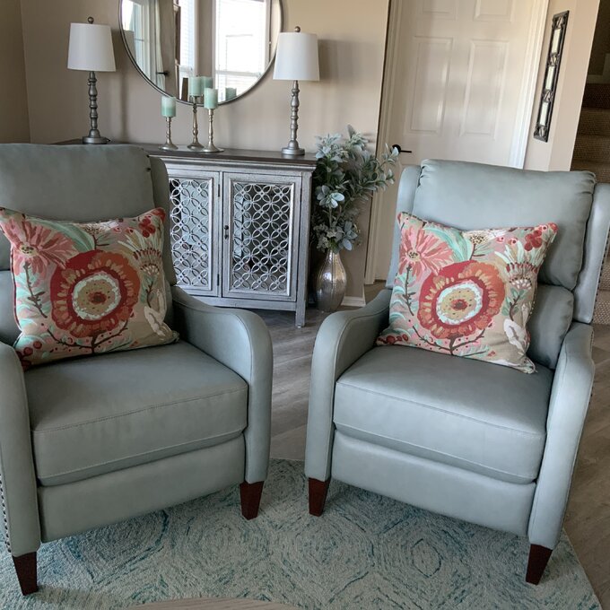 Founded on a solid hardwood frame, a modern take on a classic wingback, this Westmere 28.75" Wide Genuine Leather Manual Club Recliner boasts accents like thick foam cushioned seats. Upholstered in foam-filled genuine Top-grain leather blend with vegan leather, it sports nailhead trim for an inviting feel. The recliner has an ergonomic design, product engineering, and uncompromising quality. Simply push back to recline to the maximum 140 degrees, no levers or buttons required, then you can spread out. Comfortable seat and back support for long-term sitting, TV viewing, or a relaxed recline.