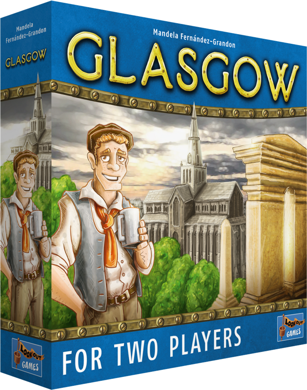 Glasgow is a quick tile laying and resource management game by designer Mandela Fernández-Grandon. Two players of ages 10 and up compete to become the most successful merchant in the city of Glasgow. A variable setup and, at least in the beginning of the game, an undefined placement grid promise a lot of replay value. After approximately 30 minutes, the players score their buildings and the player with most points wins the game.