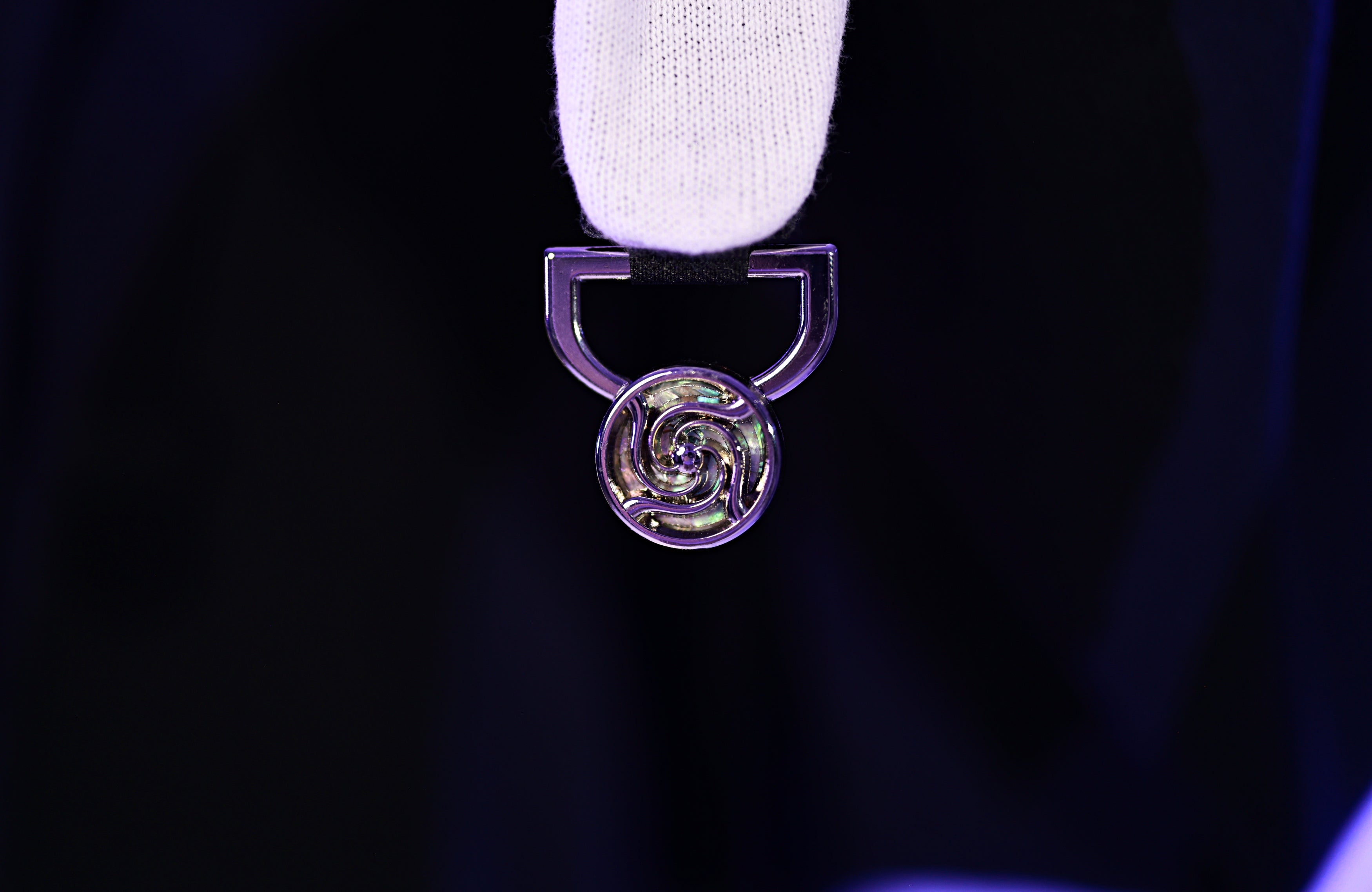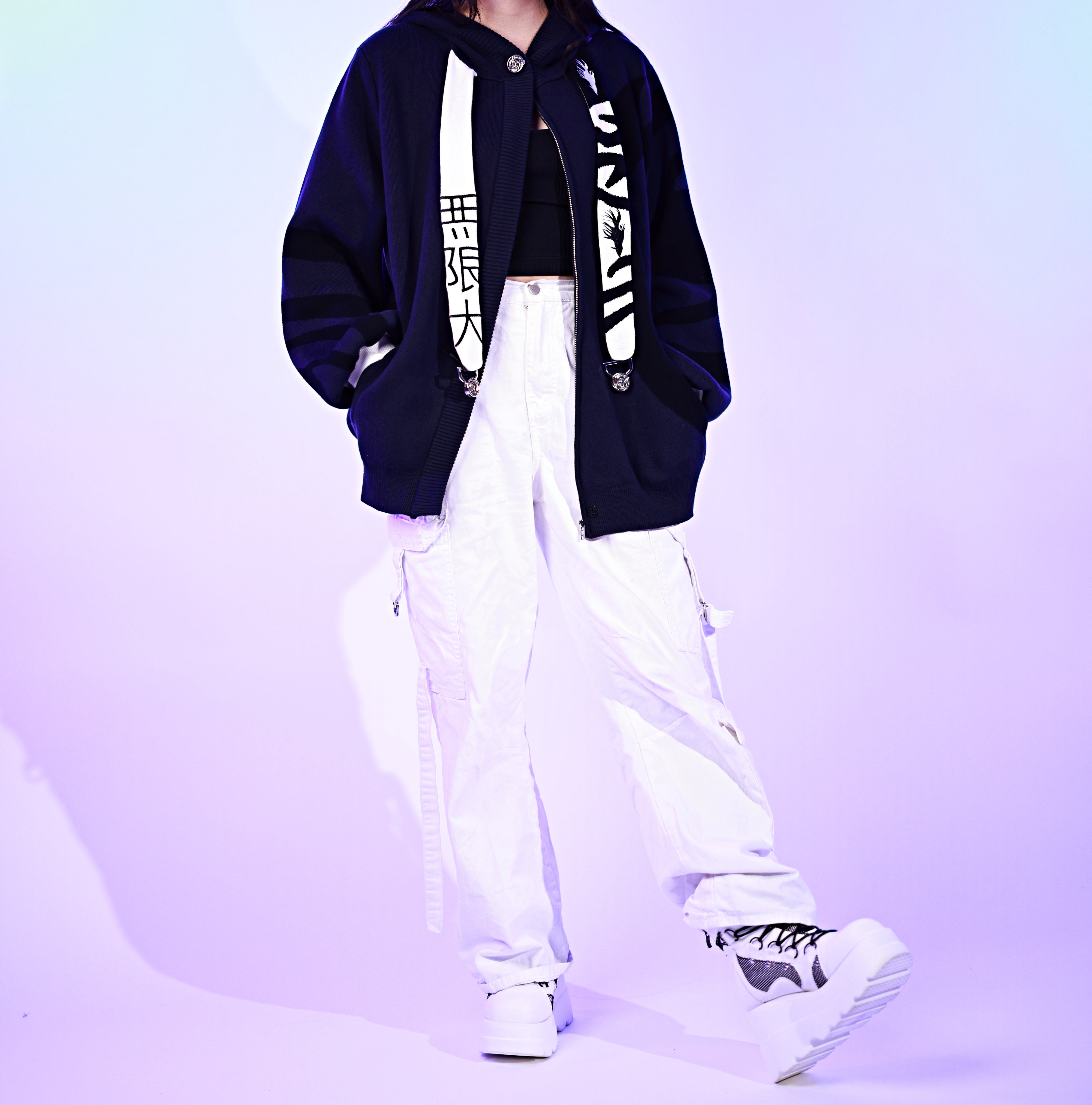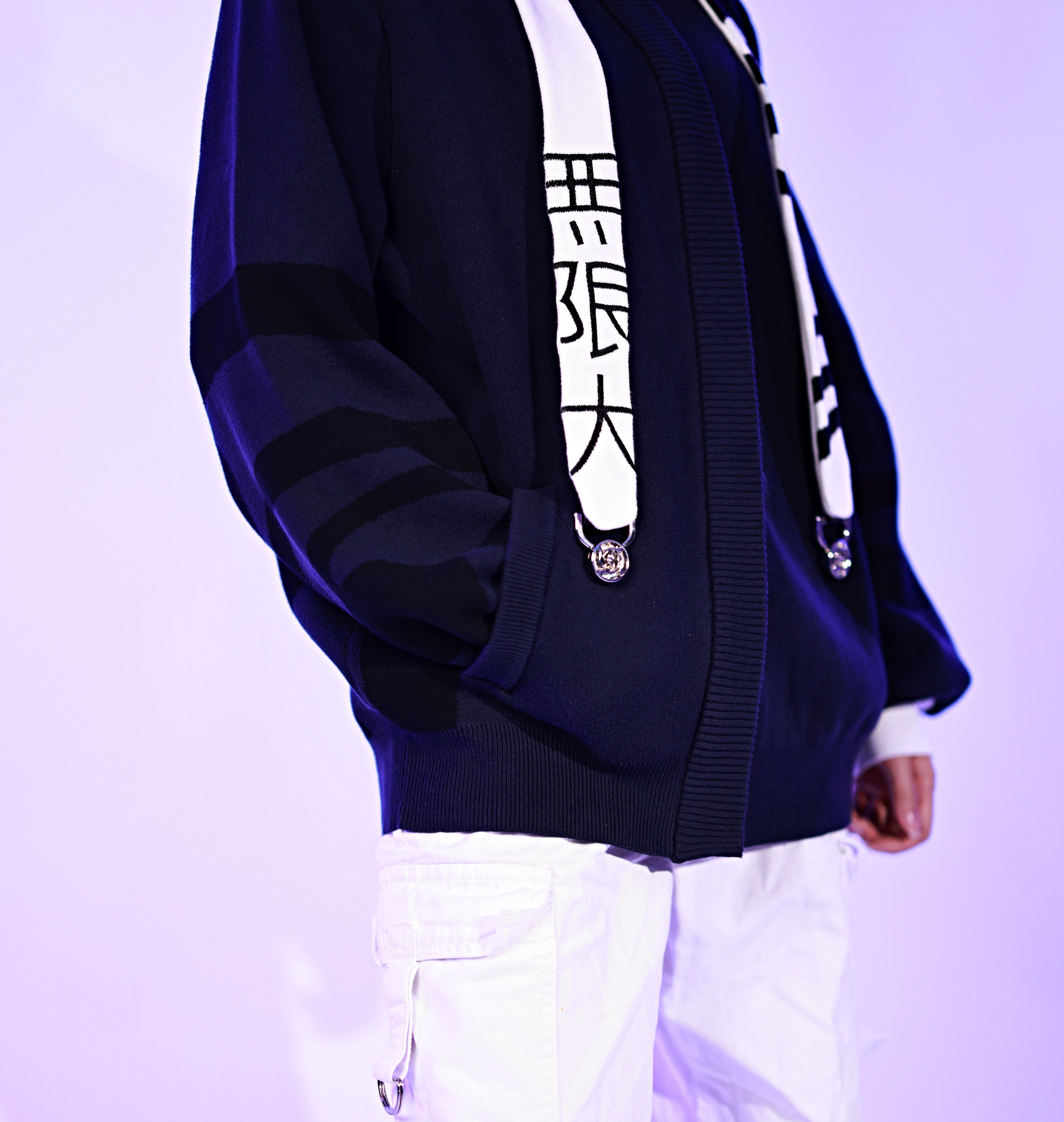 This whole collection features some of the most detailed embroidery we have ever made. The design features our new magnetic buttons and pendants that let you customize your hoodie and add your own touch! It comes with a set of button top pieces that can easily be interchanged with top pieces from other hoodies from this collection. Your will also be able to purchase complementary top pieces as an add on in the future to further customize these hoodies. The pieces are made from high quality metal and polished abalone shells. Each top piece has completely unique & very beautiful colors similar to Gojo's eyes.  The fabric is made from the highest quality 100% cotton yarns and features very detailed embroidery of the fish representing Gojo and Geto. The design also features gradient jacquard sleeves and a curved Zipper to give this design an even more unique look.