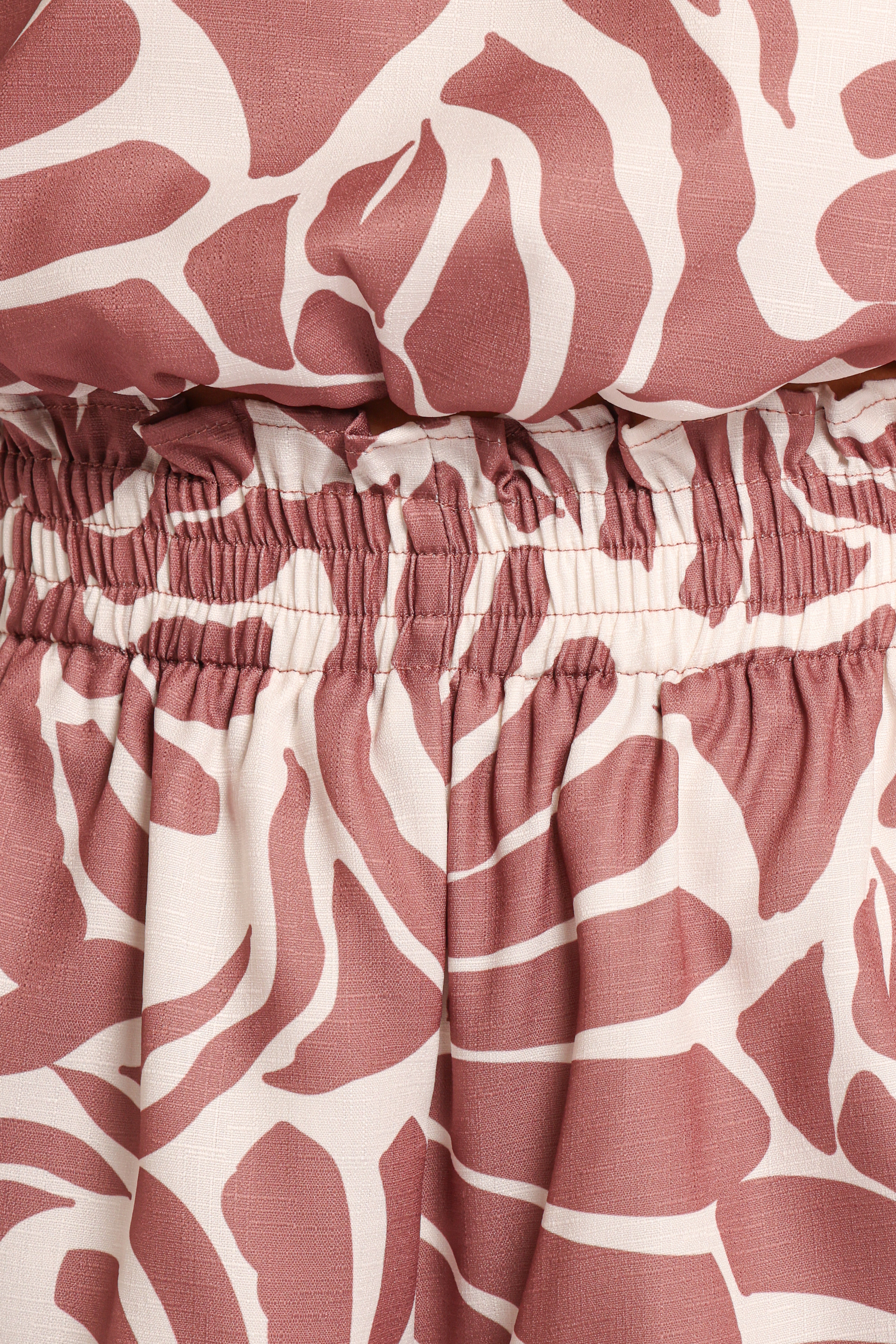 DETAILS Comprising of a one shoulder asymmetric neckline top and high waisted shorts, this ensemble is definitely a statement piece. The non-adjustable shoulder strap adds an extra touch of style to the look while the knot detail brings it all together.