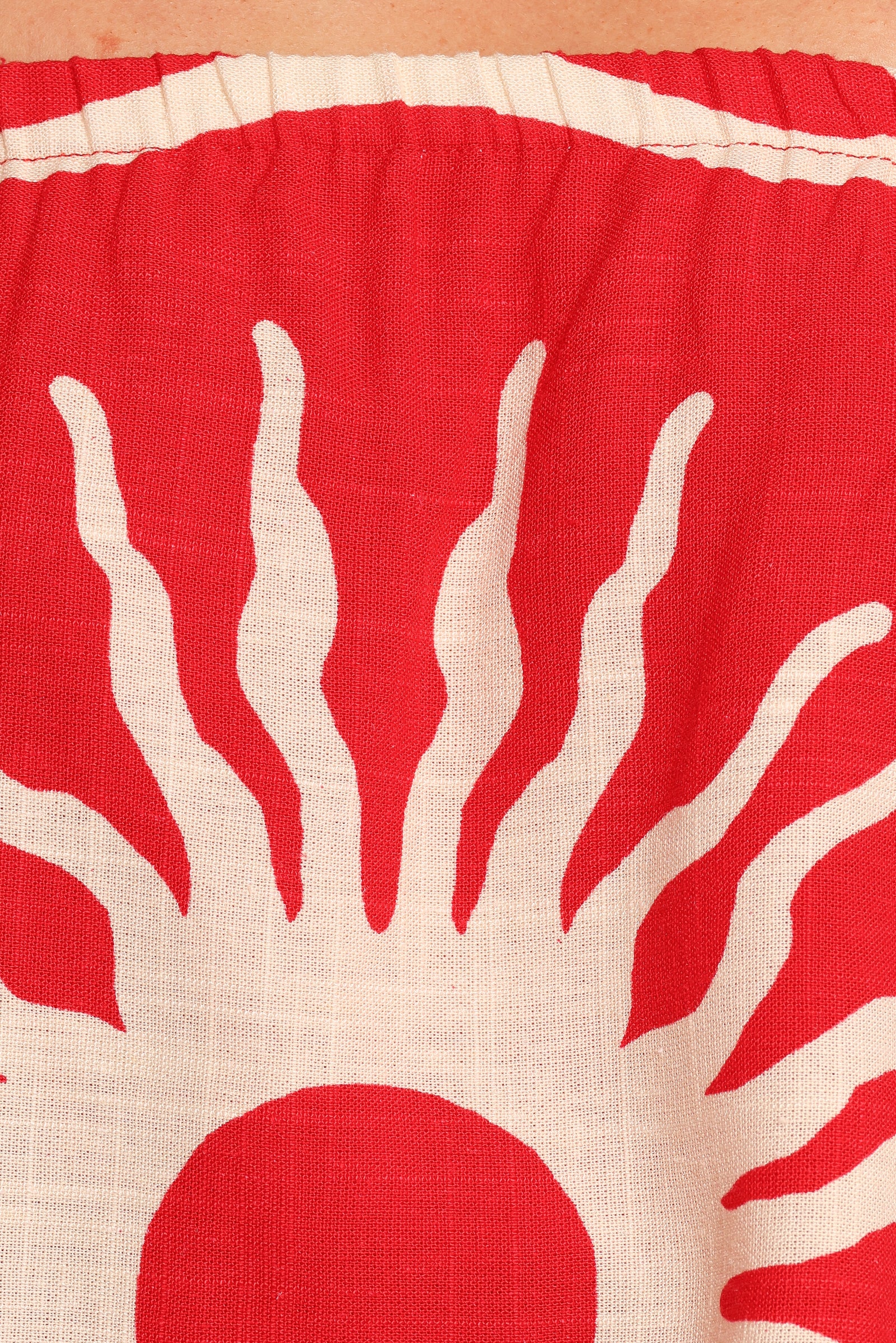 DETAILS Turn up the heat this summer with the Herbie Strapless Romper in Sunburst. Designed with a carefree elasticized neckline and waistband, this strapless romper offers an effortlessly chic silhouette that's all about comfort and ease.