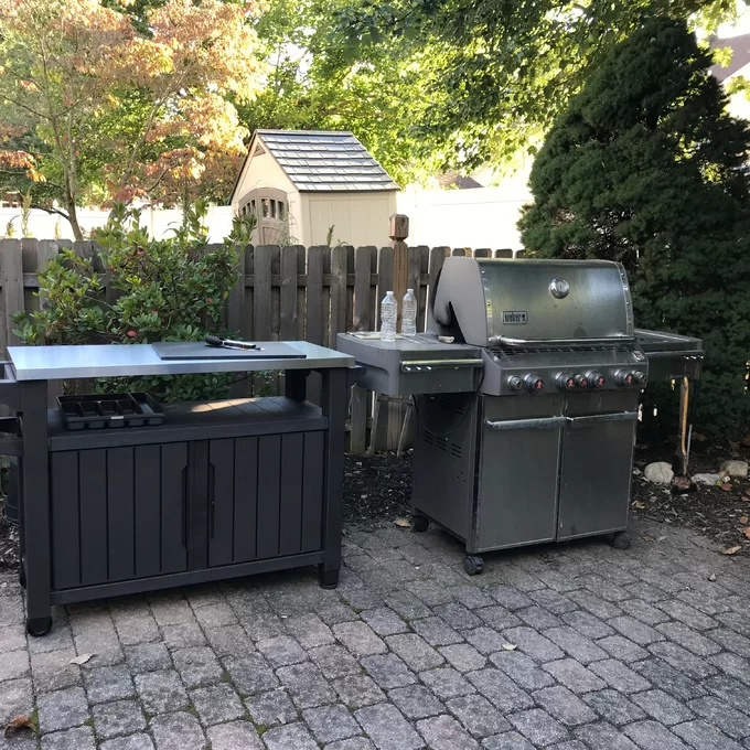 - Additional Features: Towel Holder; Attached Bottle Opener; Spice Rack