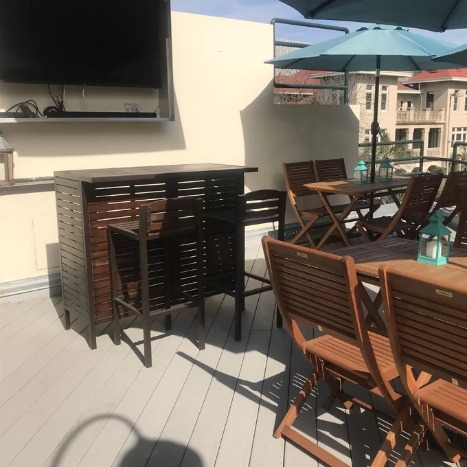 - Storage space: this bar table offers two slat-panel shelves, allowing you to organize your bottles and accessories neatly and discreetly.