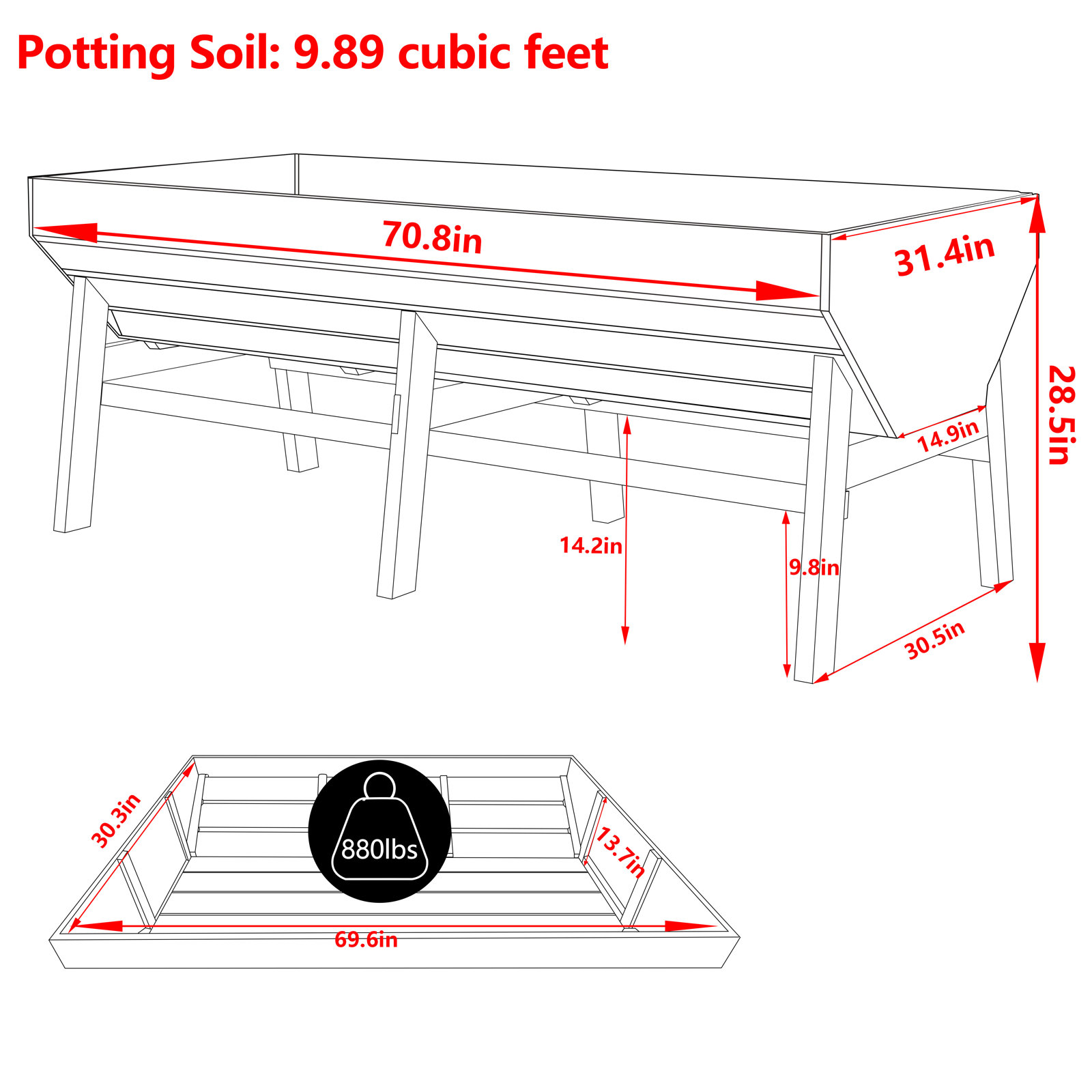 - Oversized large wood elevated planter: This large raised garden bed with legs is totally big enough for your daily planting work. You can put 9.89 cubic feet of soil in this potting, and the weight capacity is 880lbs. You can plant whatever you want.