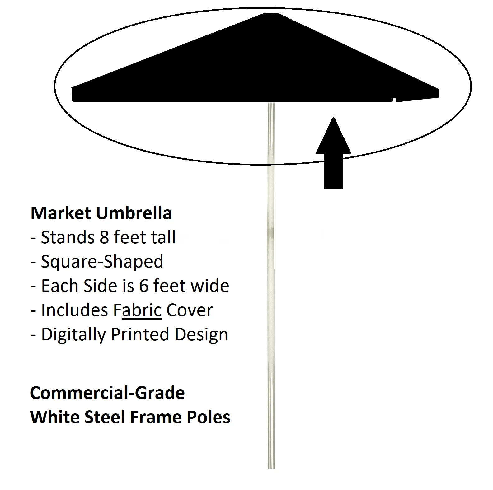 - Open Umbrella Dimensions L- 72" x W - 72" x H - 96"