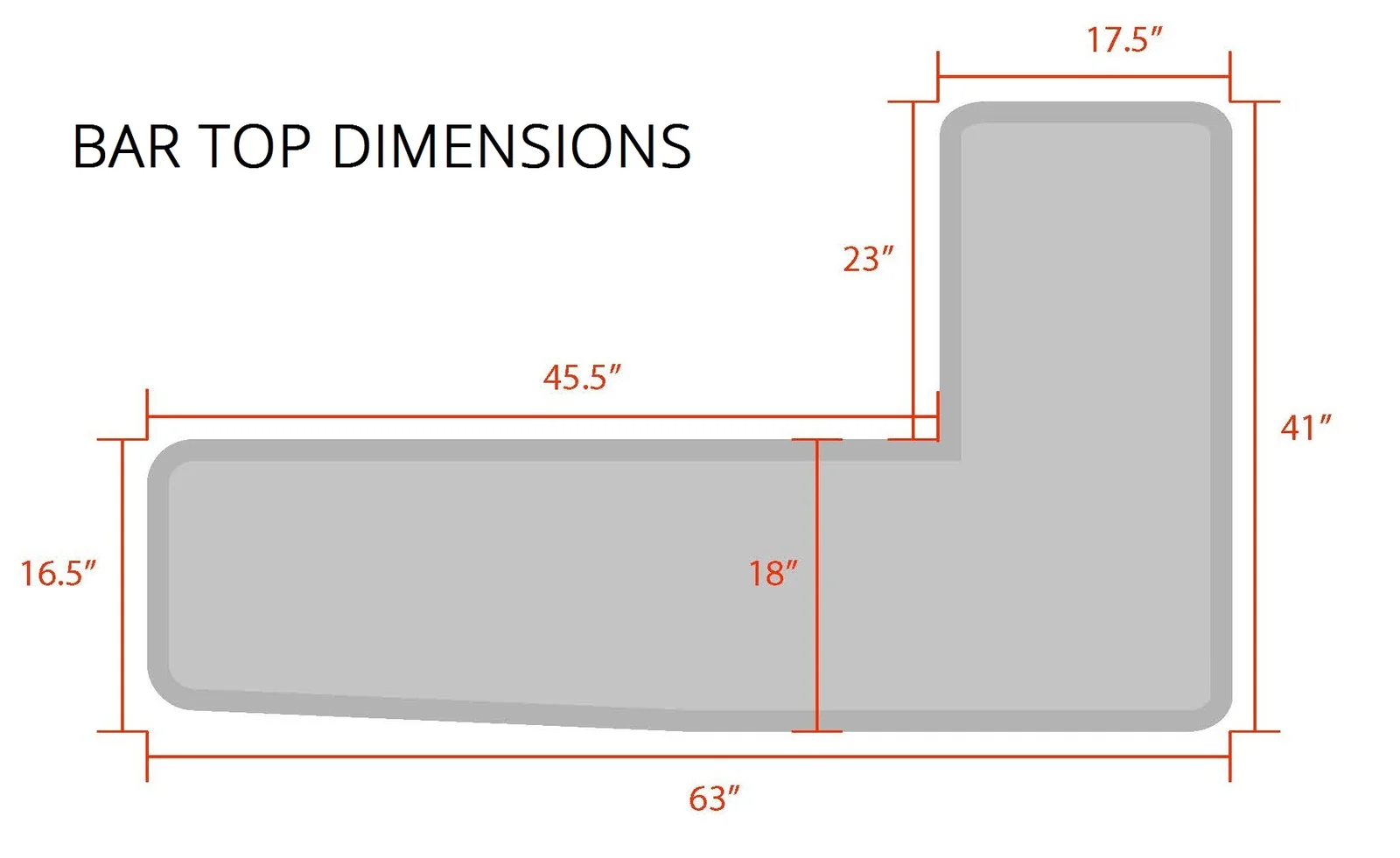 - Bar: 43'' H x 63'' W x 41'' D